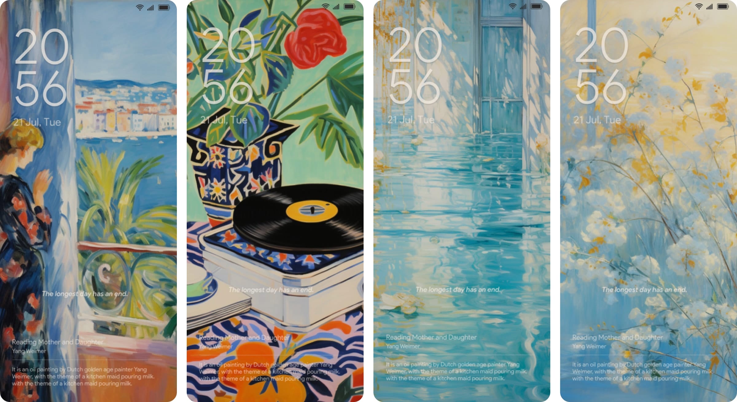 With the artistic styles of five countries—Spain, Italy, France, America and Brazil, virtual artists created a series of oil paintings. These works serve as lock screen interfaces that automatically change with each screen turn-on, providing users with a visual art feast available anytime, anywhere.