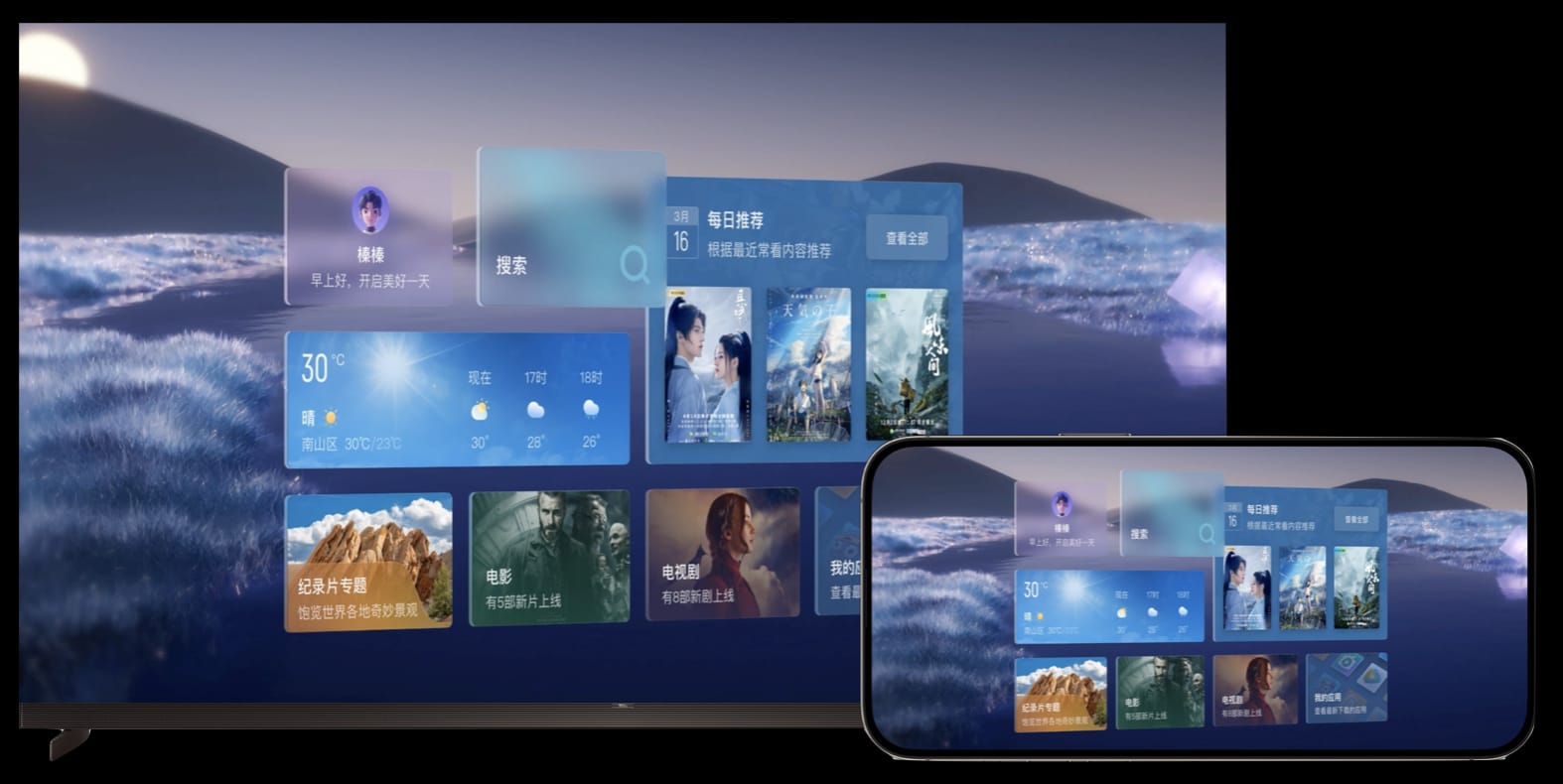 Easily manage and personalize your TV’s home screen remotely through your smartphone, even via your favorite social apps. With the redesigned TCL LINGKONG System 2025, your TV becomes an intuitive digital companion, offering faster navigation, adaptive layouts, and a calm, fluid interface that feels alive to the moment.