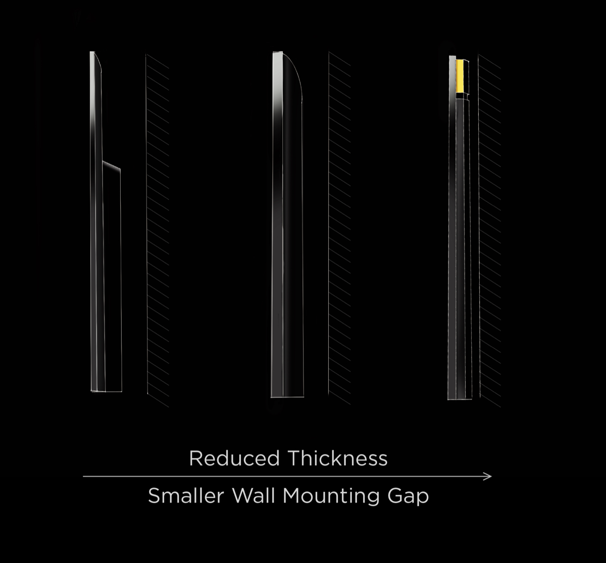 The ultra-narrow 1.2mm bezel on the front greatly reduces visual interference and creates a borderless screen effect. To achieve an extremely slim visual effect, our industrial designers experimented with various curves and folds, ultimately replacing the curved design with small angles and large folds, reducing the gap when mounted on a wall, increasing the contact area, and making the installation of the screen and the wall snugger and firmer. This also provides users with a minimalist and more immersive viewing experience.