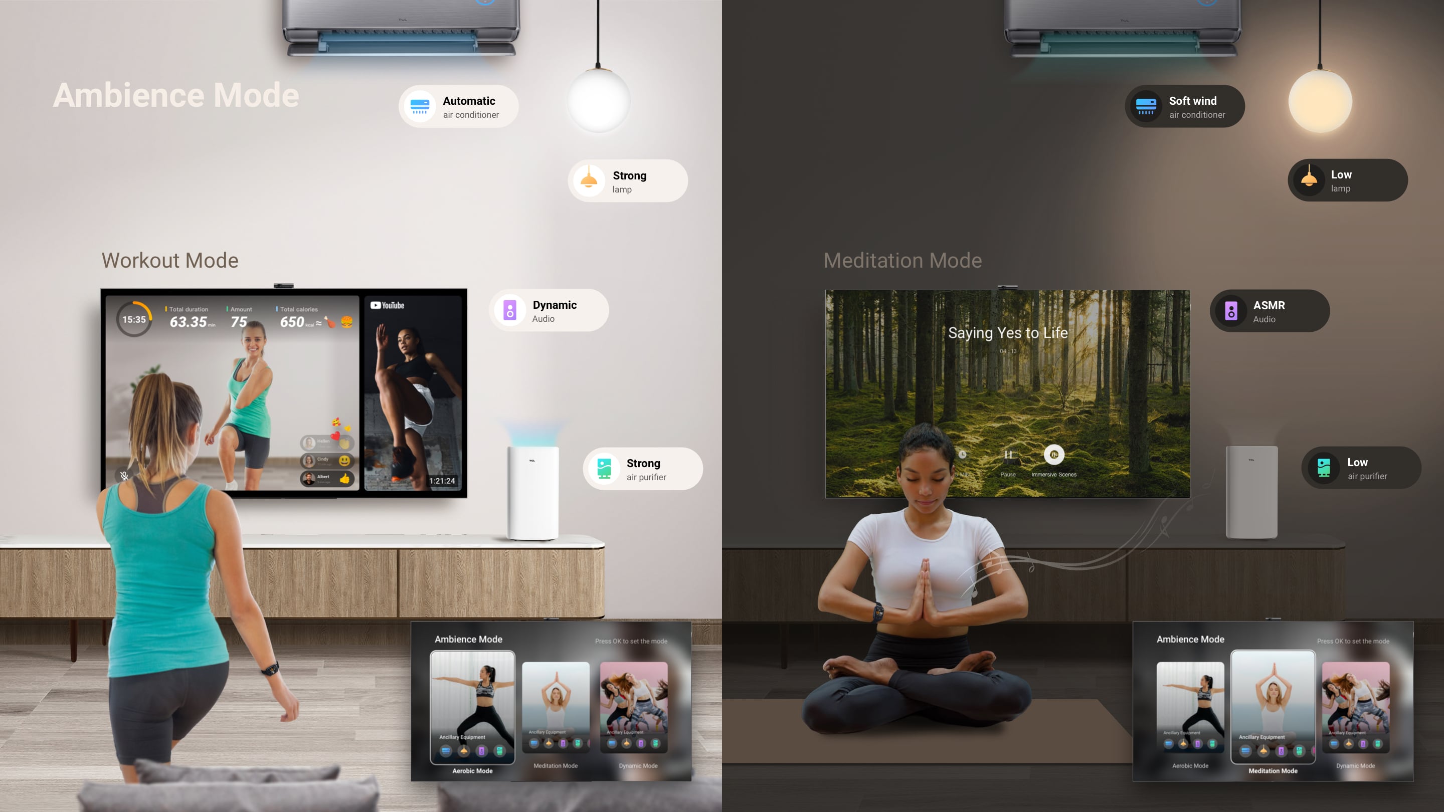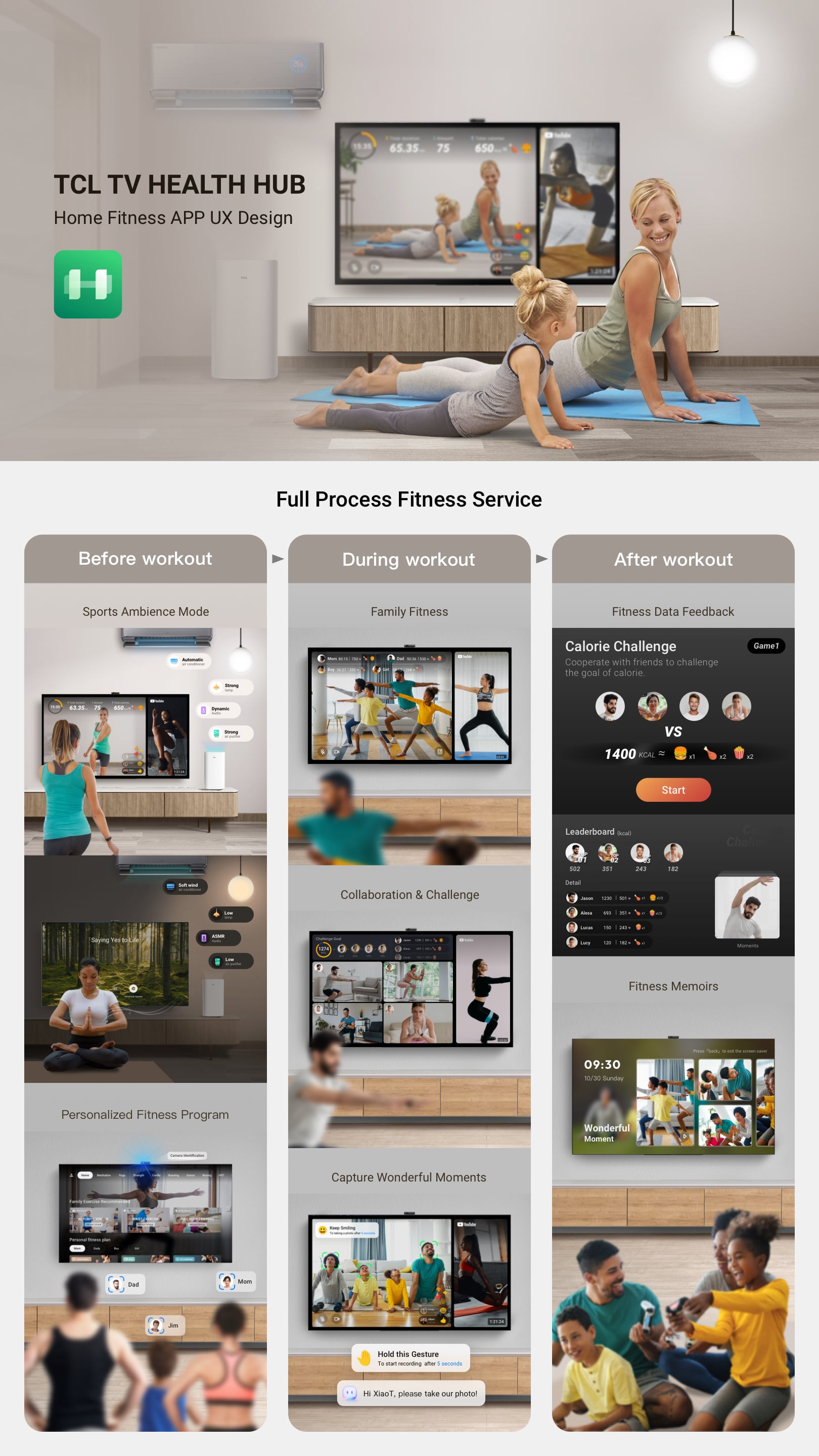 TCL HEALTH HUB promotes a new way for users to bond with their family and friends at home. Users can exercise, interact and communicate with each other via TCL HEALTH HUB and enjoy a light and uplifting healthy lifestyle. Unlike the current home fitness product experiences, TCL HEALTH HUB provides a more immersive ambiance for home exercises with IoT devices. It gives people more personal and interactive fitness plans to have fun staying fit.
