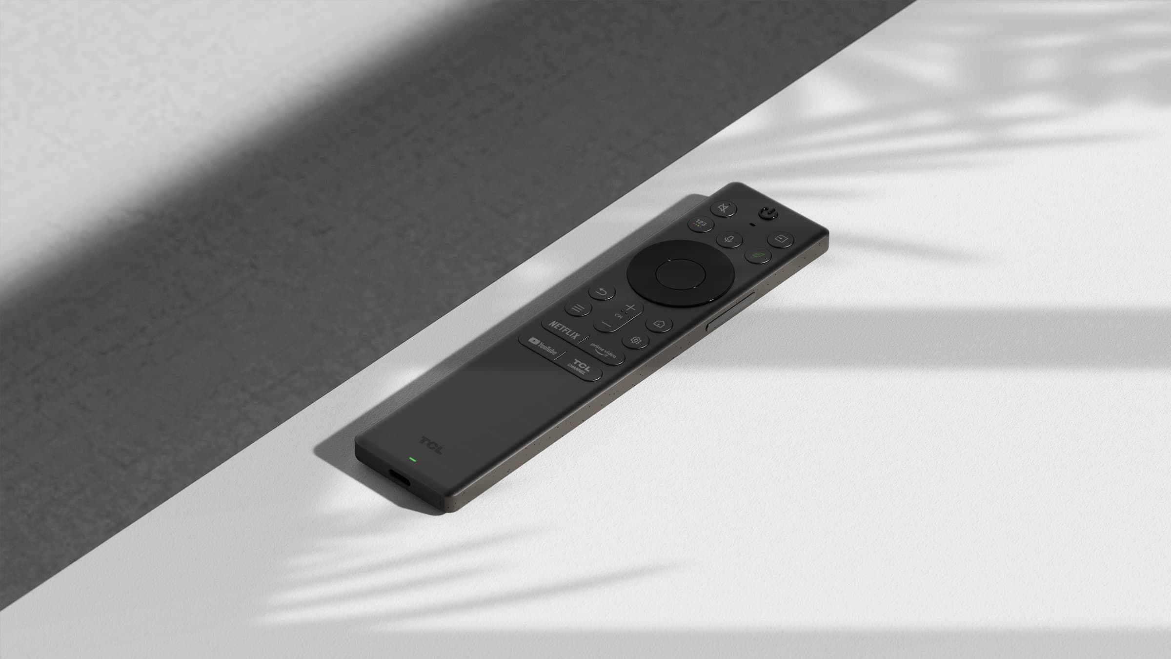 The TCL RC9 Series Solar Remote is a solar-powered sustainable solution. Its built-in supercapacitor eliminates the need for battery replacements or recharging. Just a few seconds of exposure to light ensures extended operation. What sets this remote apart is the top-mounted solar panel, optimizing sunlight exposure. The front panel blends the solar panel seamlessly using one-way light transmission technology, preserving its aesthetic appeal. The back shell features various recycled materials in different colors, promoting eco-friendliness and personalization.