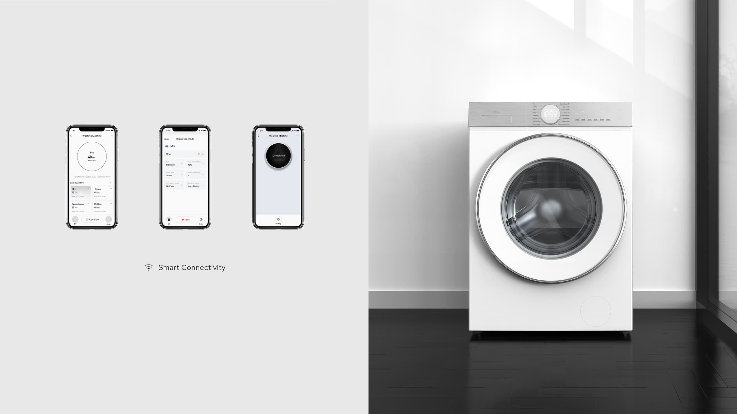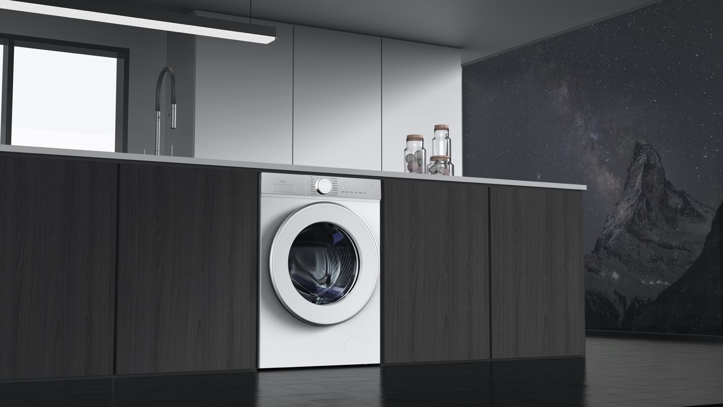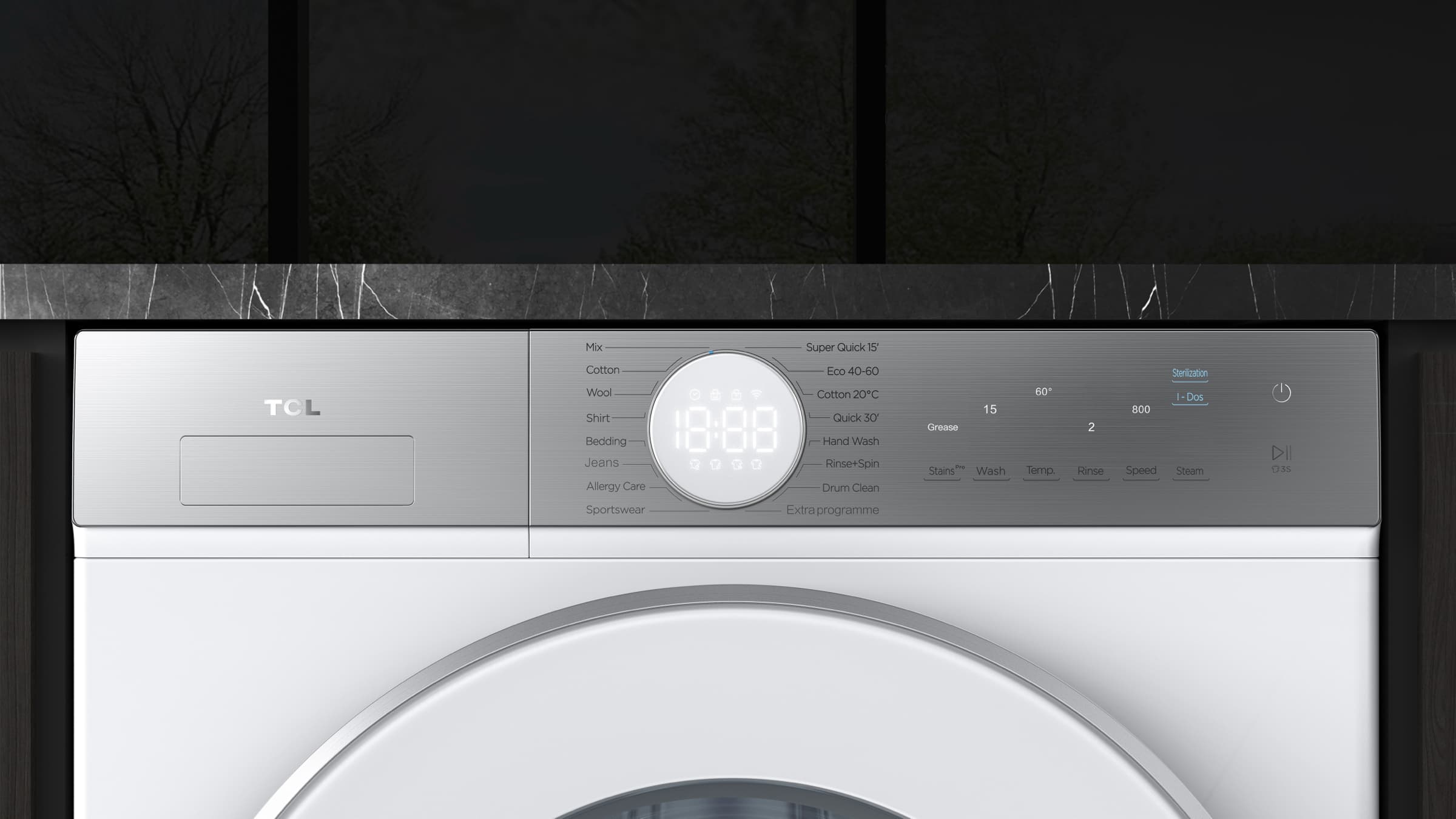 The TCL T7H SuperDrum Laundry Care Series impresses with its elegant, minimalist exterior, expressing power and hygienic cleanliness.