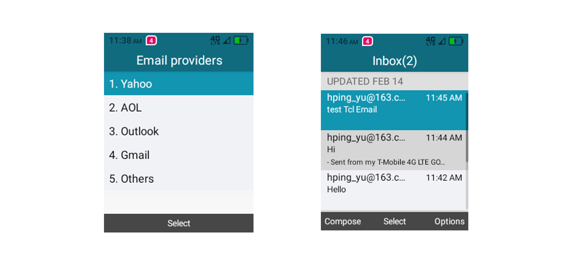 The Email app gives you quick access to your email on the phone. When you use the email application, all the information showed on the Email is only based on data fetched from Gmail server through Third party (eg.If you use Gmail account, these data only fetched from Gmail server through 3rd party Google API.) Your personal information, such as email address, text content, pictures, etc. will only be processed locally. TCL do not store you data on our server.