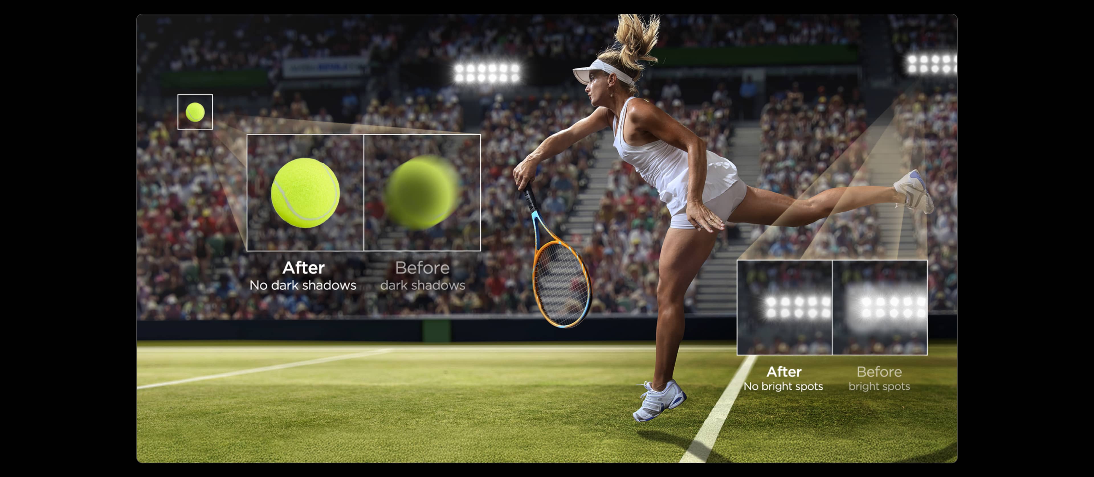 *The comparison images are for illustrating the value of related display technologies only and may differ from the actual display effect of the TV. Please refer to the actual device for the real display effect.
