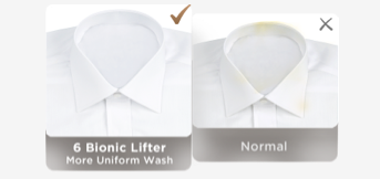 The TCL Super Drum washing technology composed of three parts: 540mm super-large drum diameter,6 Bionic Lifters and wave drum. The 540mm large drum diameter increases the tumbling distance, enhancing cleaning performance. The six staggered bionic lifters simulate hand washing, improving cleaning uniformity. The wave-patterned inner drum reduces wear and tear, protecting fabric fibers.