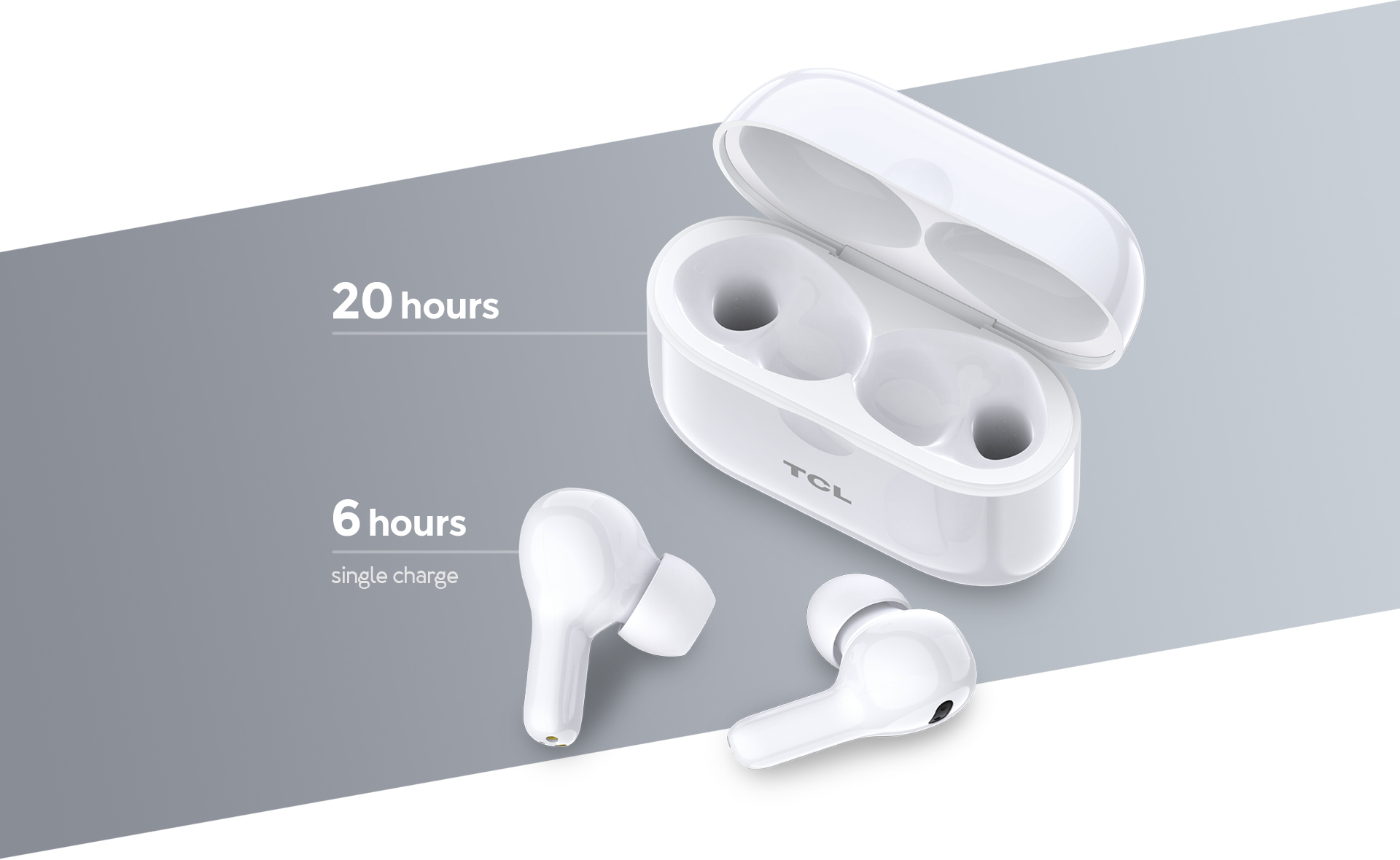 Απολαύστε ακρόαση για έως και 6 ώρες με μία μόνο φόρτιση. Αυξήστε τη διάρκεια αναπαραγωγής μέχρι και 20 ώρες με τη θήκη φόρτισης.