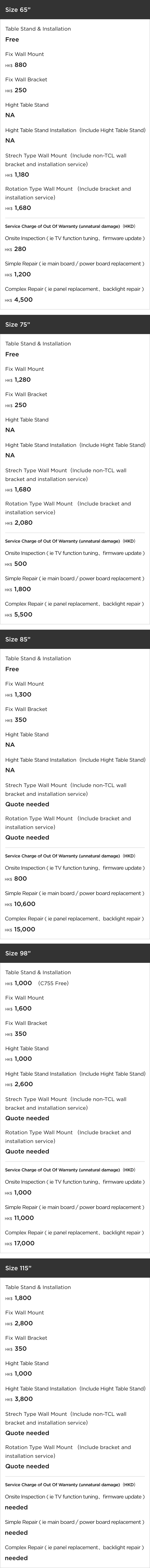 TV Installation and Repair Service Price List(Effective Date : 1-Jan-2025)