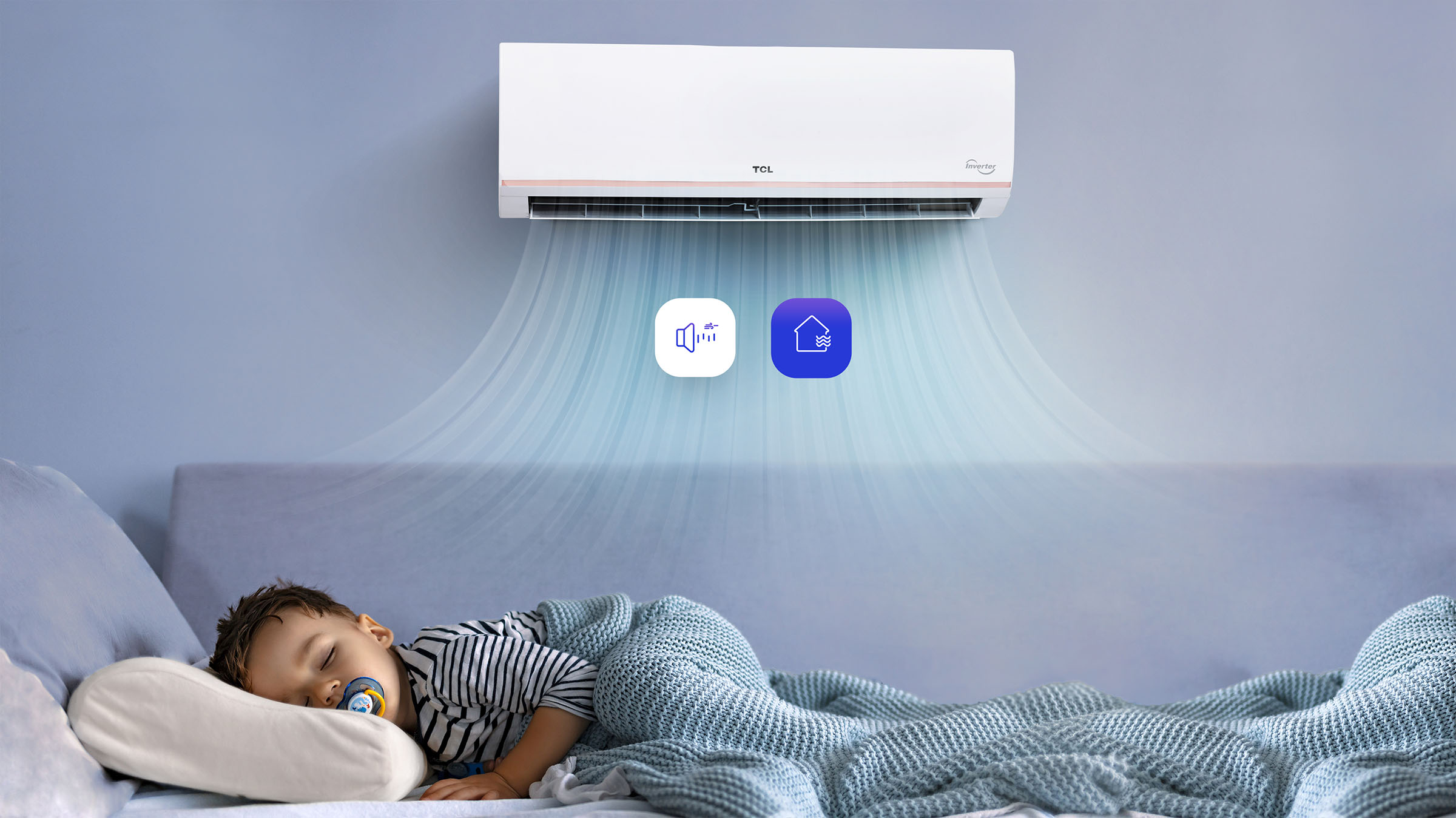 TCL Elite Series AC once activated with Sleep mode runs at lower capacity maintaining a narrow temperature buffer and ensures energy-efficient performance throughout the night, therefore providing quiet, pleasant and undisturbed sleep.