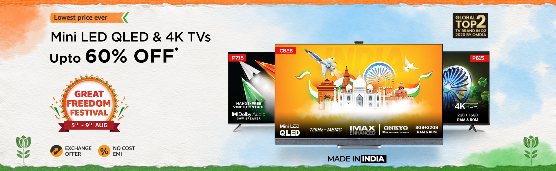 The Amazon Great Freedom Festival offers the best discounts on a wide range of smart TVs from TCL that features the latest technology.