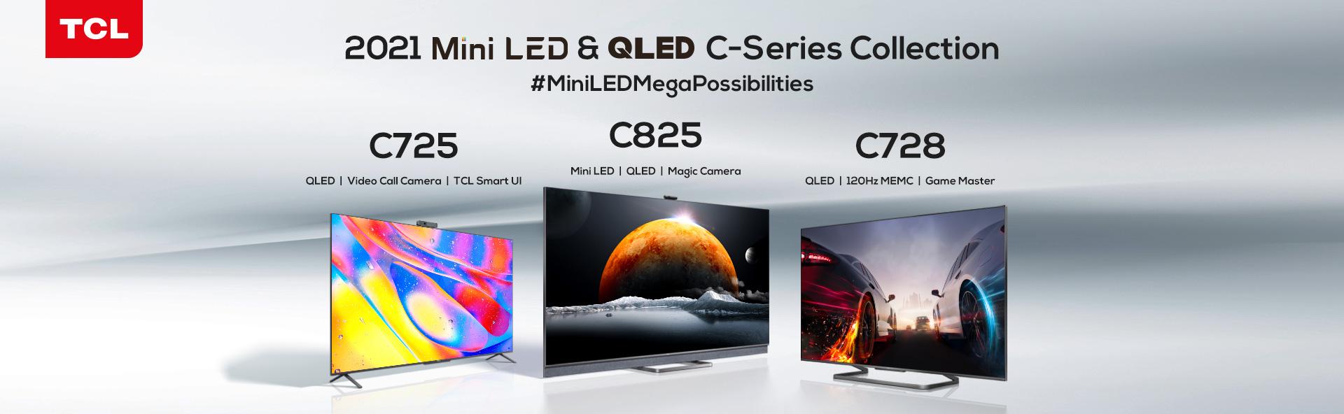 New Delhi, June 30, 2021:TCL, a global top-two television brand and leading consumer electronics company, has launched its brand new 2021 C Series Range LineupTVs: Mini LED QLED4K C825 with Magic Camera, QLED 4K C728 with Game Master and QLED 4K C725 with Video Call Camera for superior home entertainment experience. The latest models feature 120Hz MEMC, Dolby Vision, Dolby Vision IQ, Dolby Atmos, IMAX Enhanced, Game Master, Hands-free voice control 2.0, TCL Smart UI, among other features.