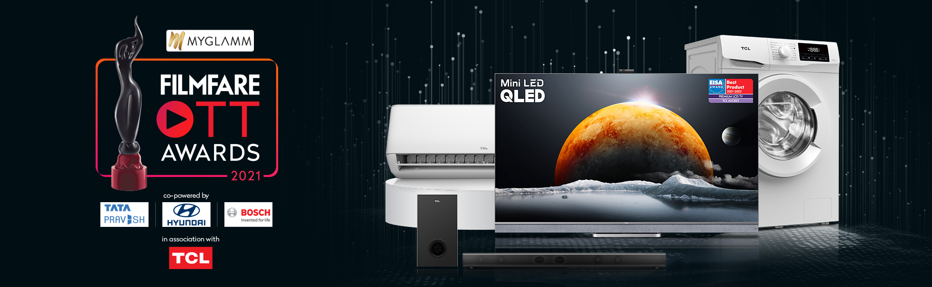 Delhi, November 24, 2021: TCL, one of the world’s leading television manufacturers aims to provide the customers with a cinematic experience at home with their range of televisions featuring the latest technology. In its mission to upscale home entertainment TCL has now joined hands with Filmfare forMyGlammFilmfare OTT Awards 2021 as the Associate Sponsor. Over the last few years, OTT platforms have dominated the world of Indian entertainment that has also led to TV manufacturers focusing more on offering products that can suit the modern content type. The post lockdown period has given more power and value to home entertainment. TCL too recognized this transformation and joined hands withFilmfareto honour the OTT talents.Filmfare Awards have acknowledged and recognized cinematic excellence in the mainstream film business for over six decades, and the launch of the second edition sees the brand carry on its heritage into the digital entertainment sphere.