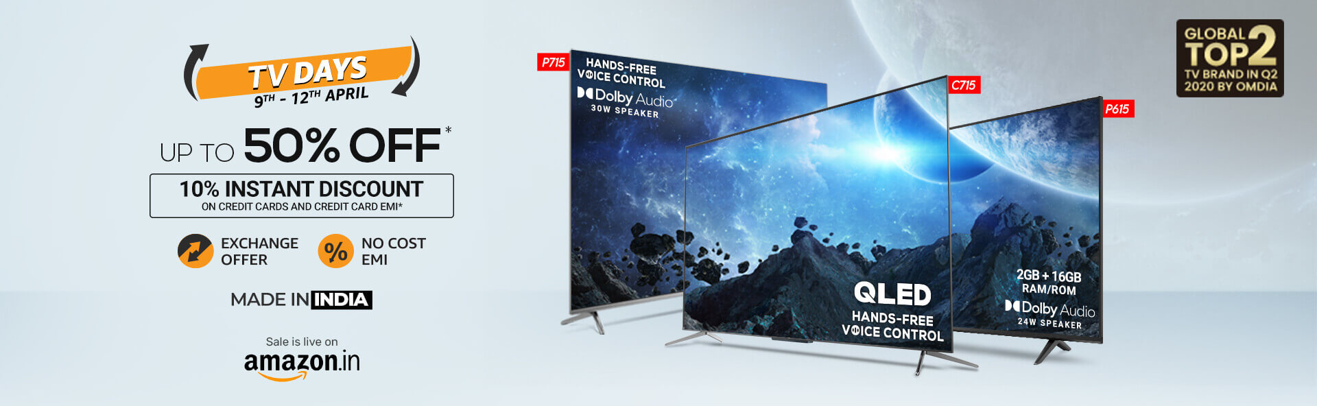 • The TVs on offer will be available on Amazon. The sale will be live from 9th April to 12th April 2021