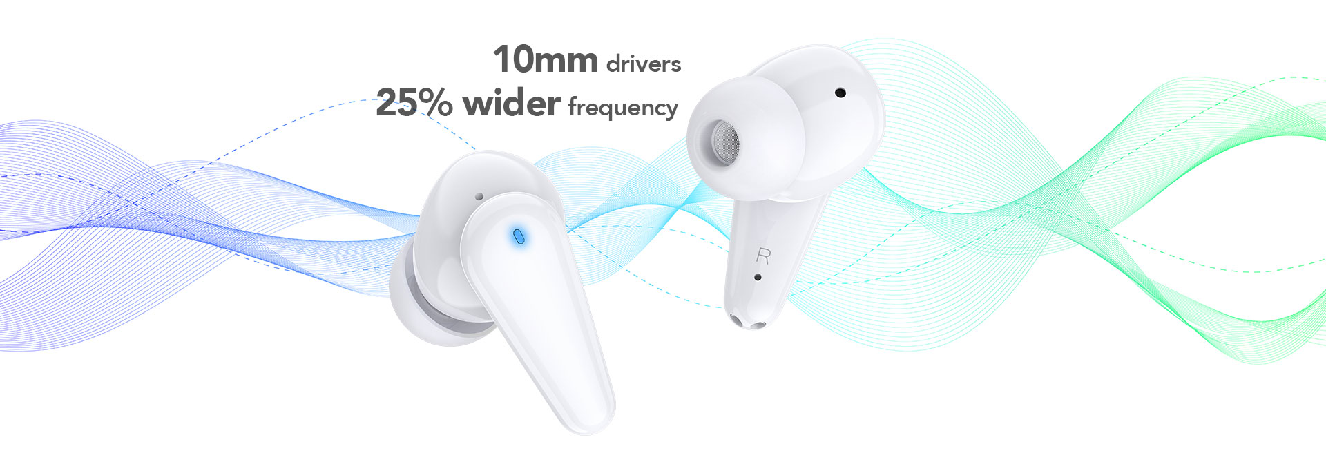 Feel refined sound of treble and boosted bass thanks to 10mm powerful drivers. You will experience acoustic clarity while listening to podcasts and your favorite tunes.
