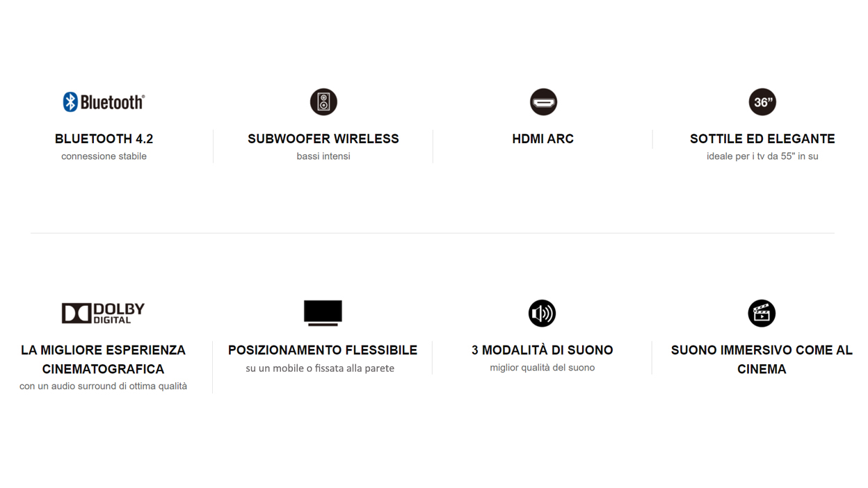 Gli amanti dei bassi si innamoreranno di questo subwoofer. Grazie alla tecnologia wireless potrai collegare la tua soundbar al subwoofer senza cavi ed in modo semplice. Vivi un suono potente con bassi profondi.