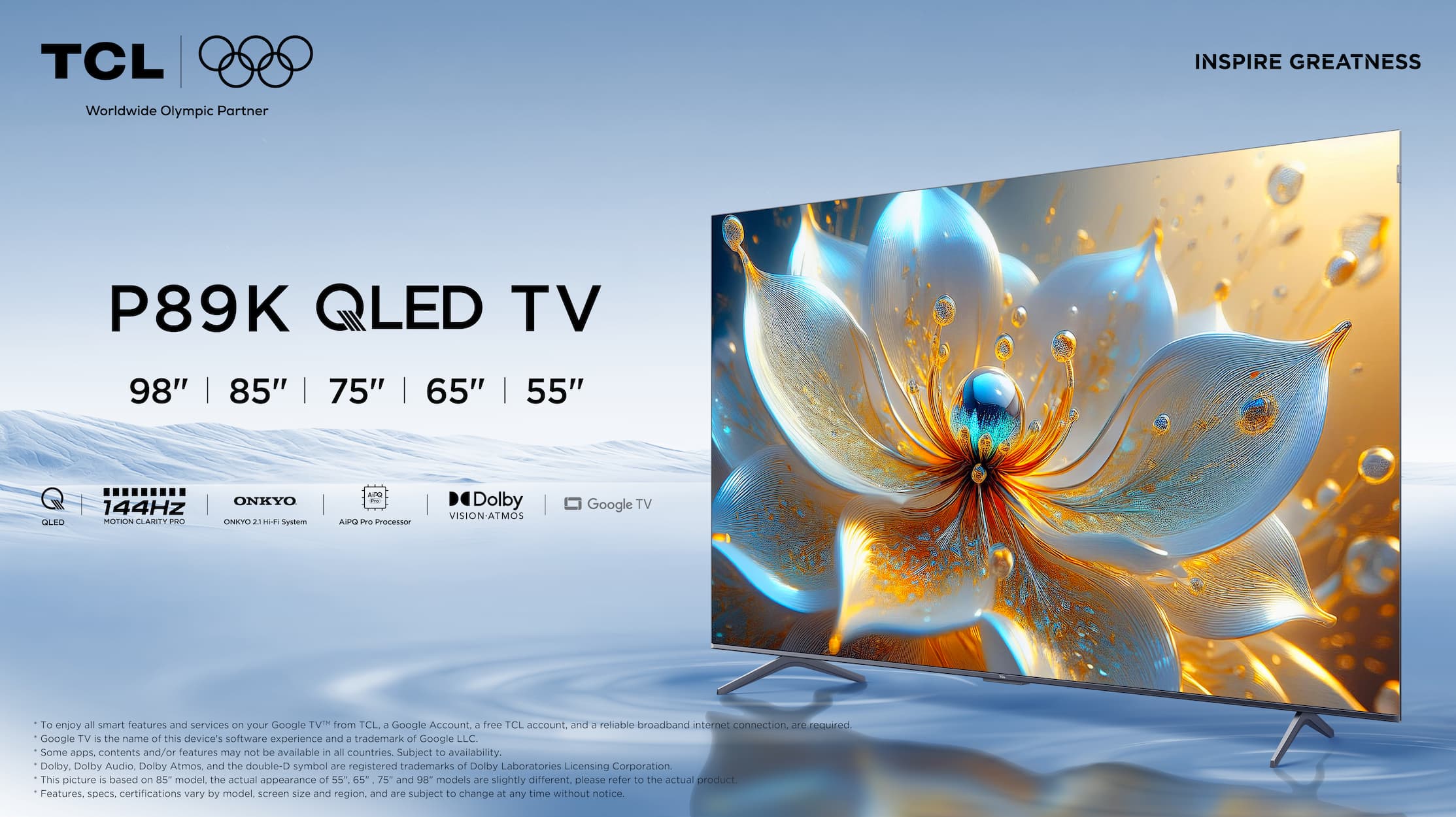 *Per utilizzare tutte le funzionalità e i servizi del tuo Google TV™ di TCL, sono richiesti un account Google, un account TCL gratuito e una connessione a Internet stabile.