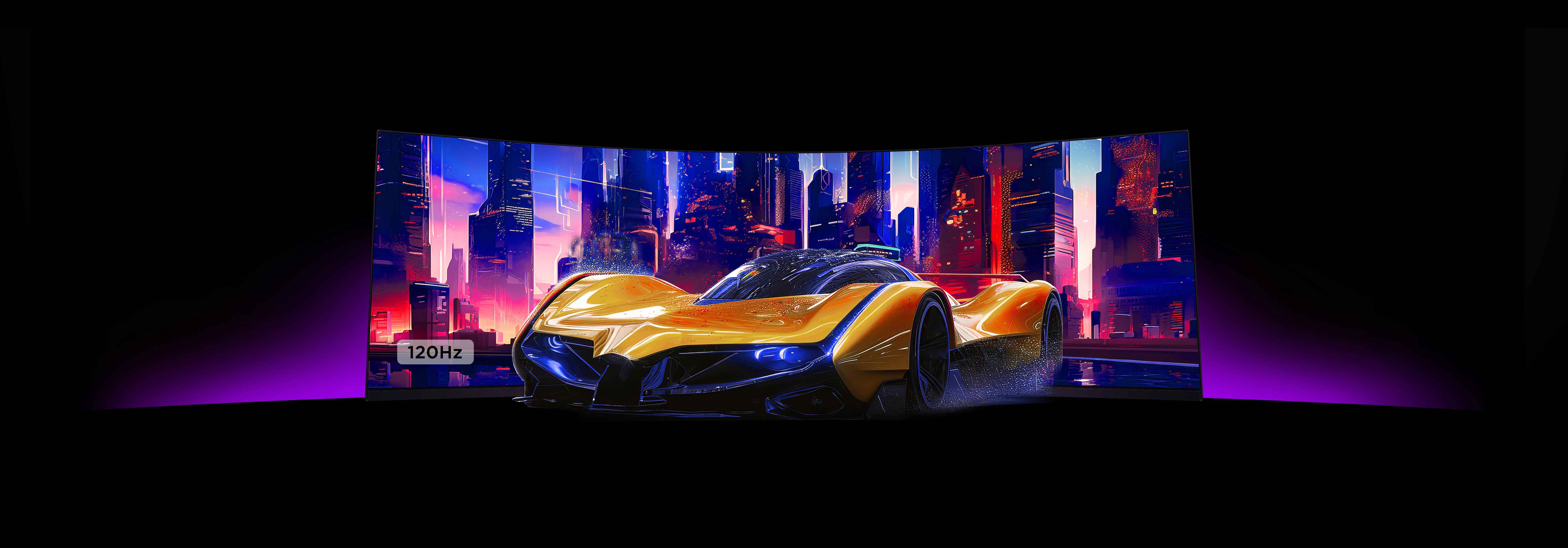 人間の視野に近い「1000R」のゴールデンカーブが、最大120°の視野角を実現。両目の自然な視線移動に沿ったカーブで、映像に包まれるような没入体験を提供します。