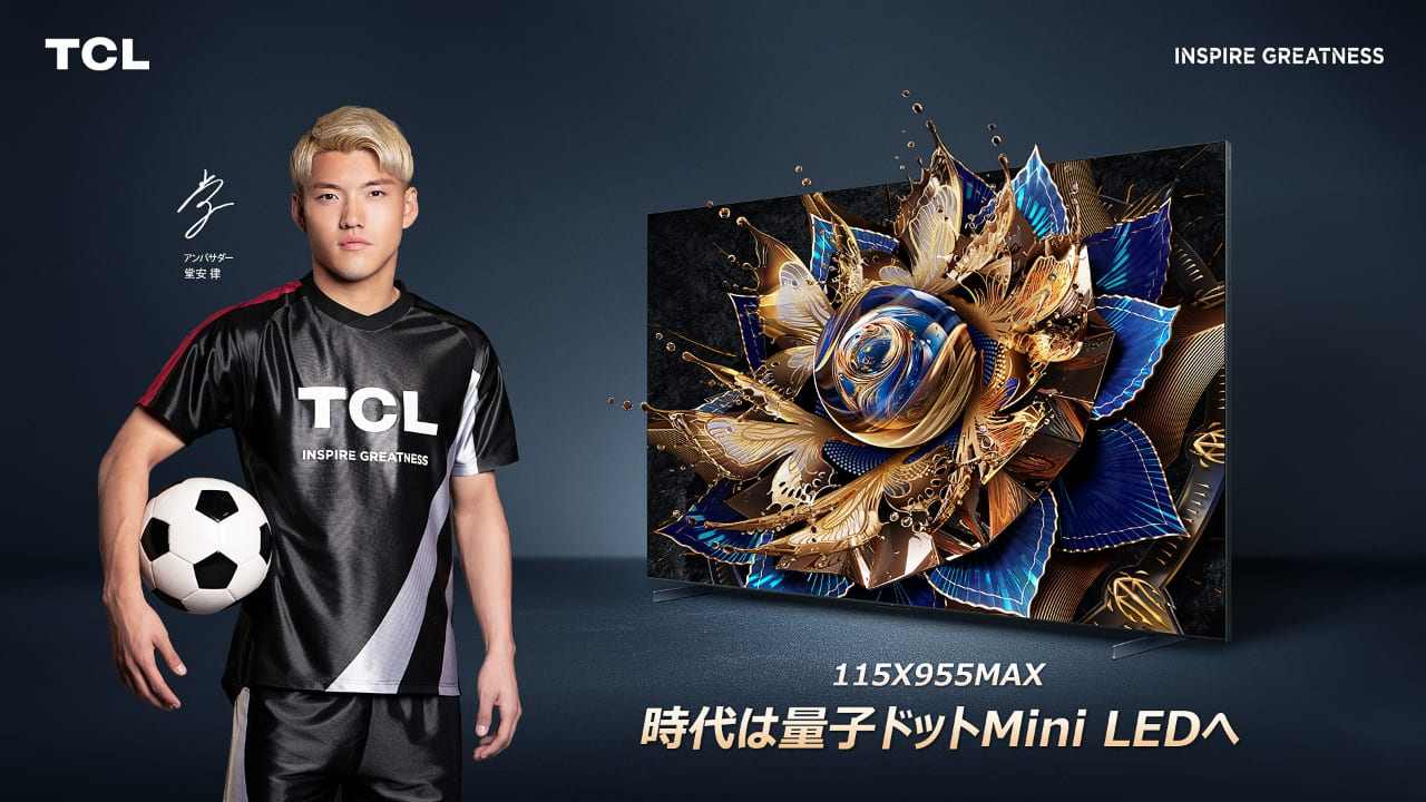 世界のテレビ・家電業界のリーディングカンパニーである株式会社TCLジャパンエレクトロニクス(所在地:東京都中央区、代表取締役:蒋賛、以下 TCL)は、TCL史上最大115インチテレビX955シリーズの発売と共に、TCLJAPANアンバサダーである堂安律選手が出演した新しいCMを公開、彼の圧巻のPKシーンを含む映像美をご覧いただけます。