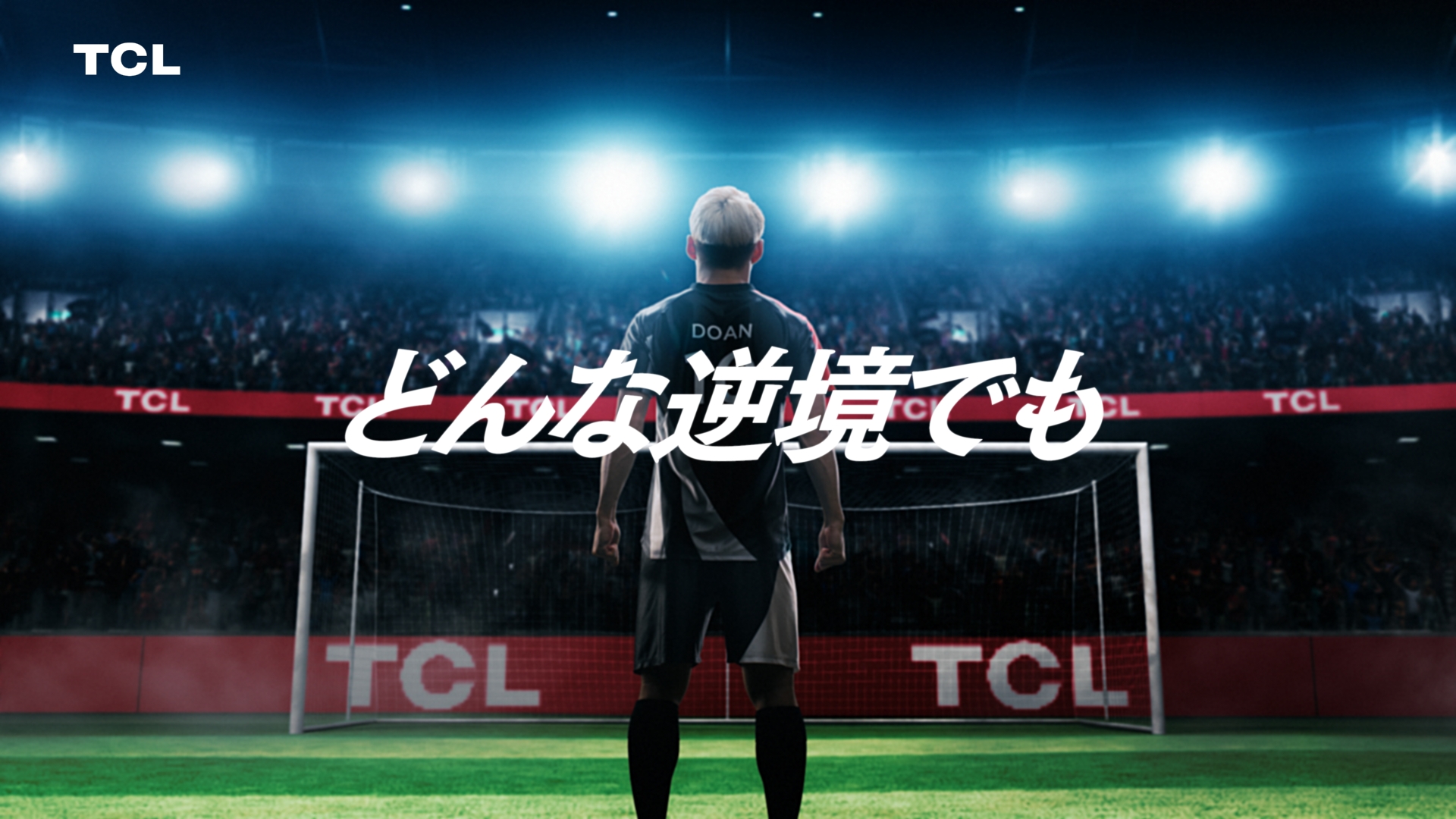 TCLの新しいブランドCMでは、アンバサダーである堂安律選手の逆境に負けない精神が強調されています。CMのストーリーは、堂安選手が重要なPK(ペナルティキック)に臨むシーンから始まります。