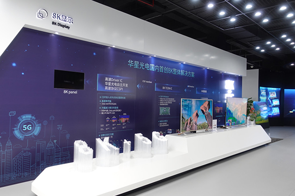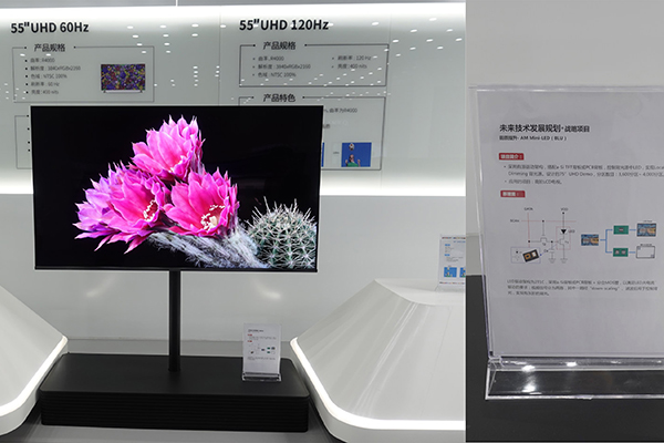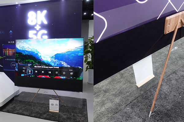 ひときわ存在感を放つ「8K+5G」コーナー。デモは5Gで信号を伝送し、USBに変換してテレビ画面に映し出すというもの。CSOTが8Kに注力していることがひと目で分かります。日本では通信の5G化が遅れているといわれていますが、短距離の低遅延大容量データ伝送を目的とした「ローカル5G」が盛り上がっています。それにしても、近年の中国メーカーの積極的な技術開発には、目を見張るものがあります。背面には、CSOTが、8Kテレビに必要な「チューナー」「8K TCON IC」(タイミングコントローラー)、「8Kパネルドライバー」、「8K液晶パネル」など、8Kテレビに必要な技術が全て整っている旨の説明。