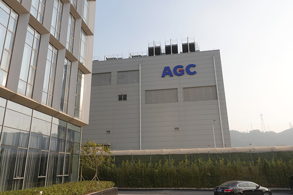 AGCのロゴを掲げたマザーガラス工場。筆者の知る限り、どのパネル工場に行っても、ガラスは世界最大手の「AGC」。デジタルだけでは完結しないガラスパネル作りには、日本の職人技的な技術が不可欠?