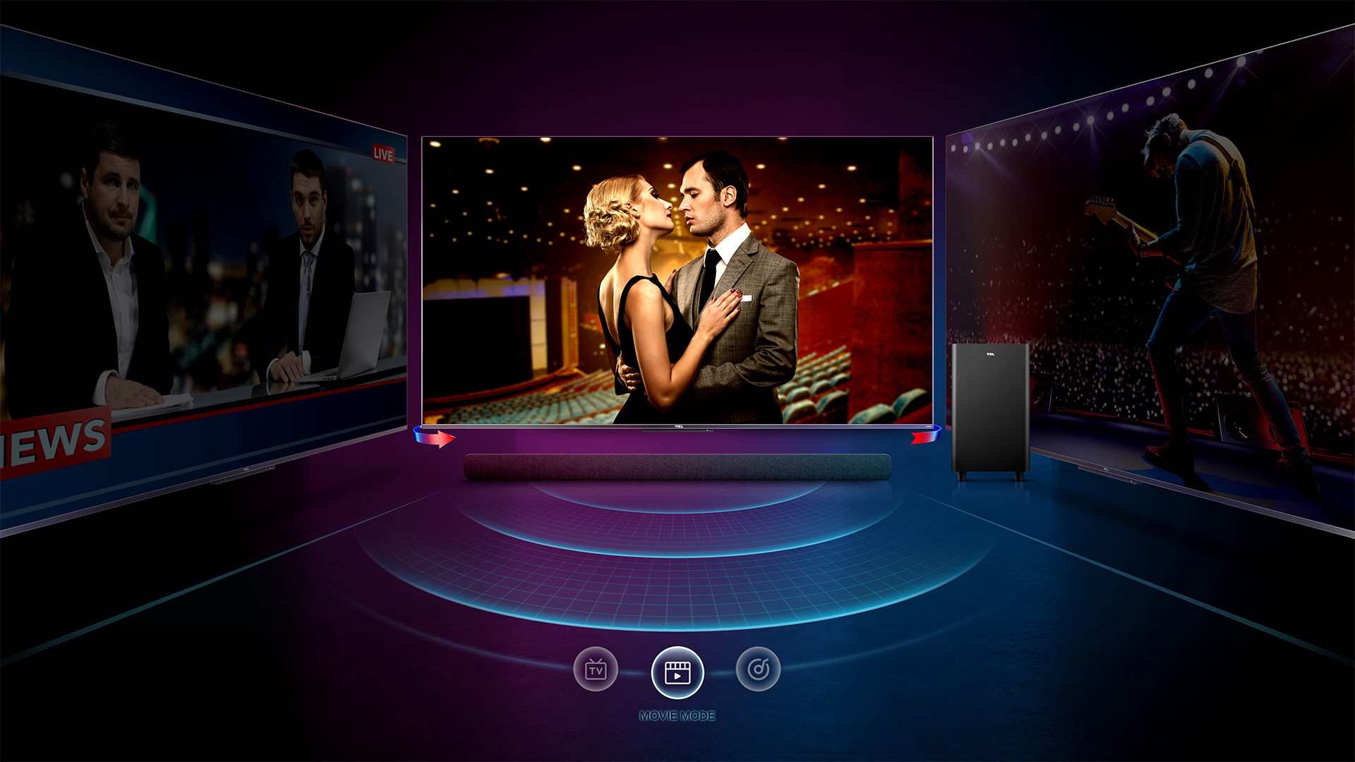 様々なコンテンツ及びシーンに合わせて、聞き取りやすい音を最適に生み出します。サウンドを広げて、低音を深めるMOVIEモードで、
