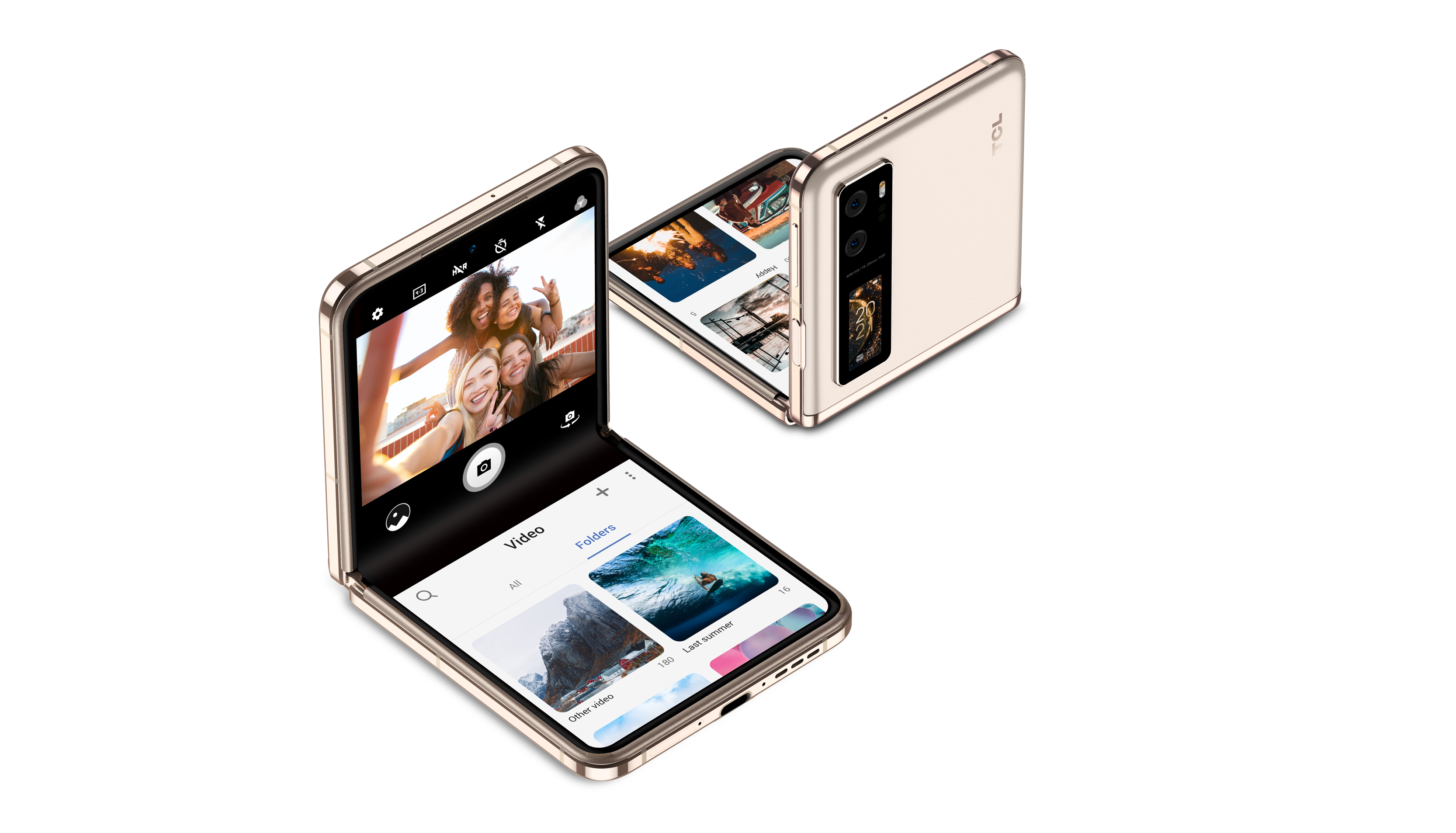 The TCL Flex V targets young urbanites seeking pocket-friendly cutting-edge smartphones. It folds the original large-sized smartphone into a pocket-friendly compact form. The special shimmering matte glass finish brings an extremely comfortable tactile and visual experience while being anti-fingerprint & anti-scratch resistant. It has a free stop hinge design between 40-150 degrees for extended usage scenarios and interactions. The holistic design with a 1.1-inch secondary screen, 48MP optical image stabilizer camera, and the one-piece lens Integrating the flash and sensors make it a versatile device opening up a wave of new possibilities.