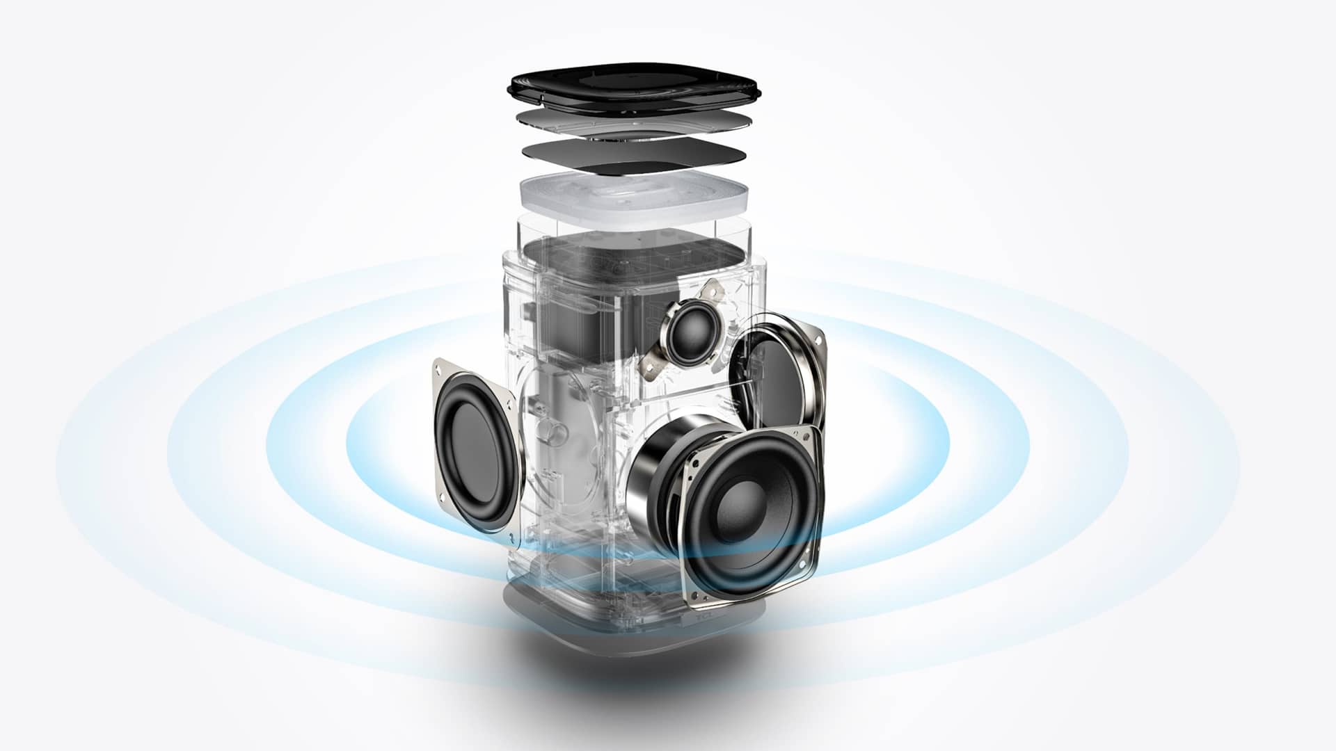 TCL W73 is a speaker that features a Hi-Fi desktop audio system and a premium home stereo experience. The speaker can be grouped with other TCL audio devices to make a comprehensive audio system. The naked-eye 3D interactive light effect on the top of the W73 wireless speaker creates a vivid and high-tech feeling for the product. We're going for that 'WOW' effect.