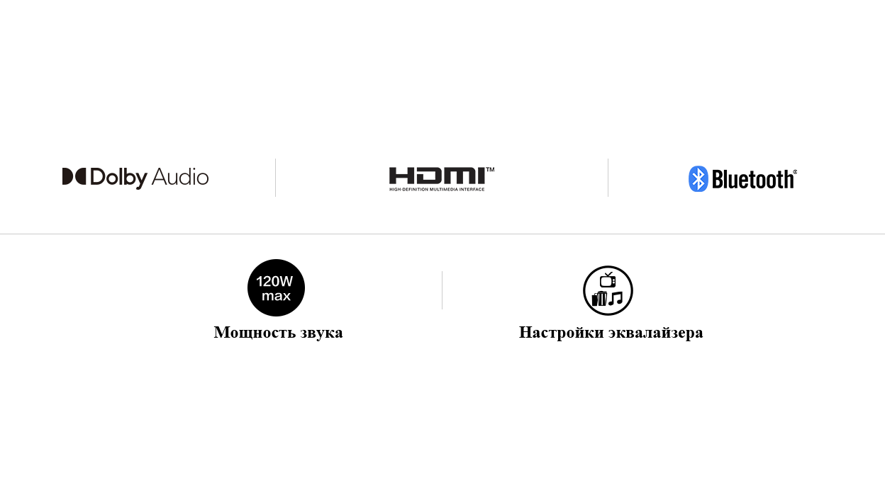 2 канала звука с максимальной аудио мощностью 120 Вт. Высокая мощность звука позволит вам полностью погрузиться в события и сделает ваш фильм или музыку по-настоящему захватывающими. Невероятные впечатления каждый раз.