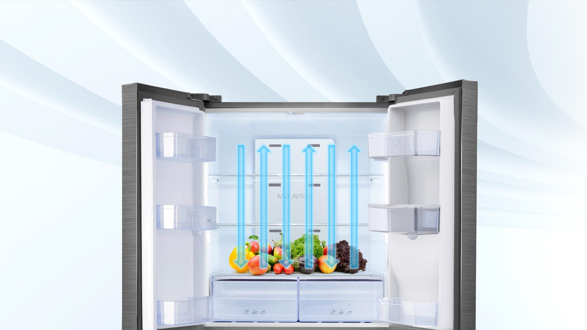 An upgraded metallic duct allows superior airflow and temperature conduction throughout the fridge; for faster and more even cooling. Experience refrigeration with superior performance and total hygiene.