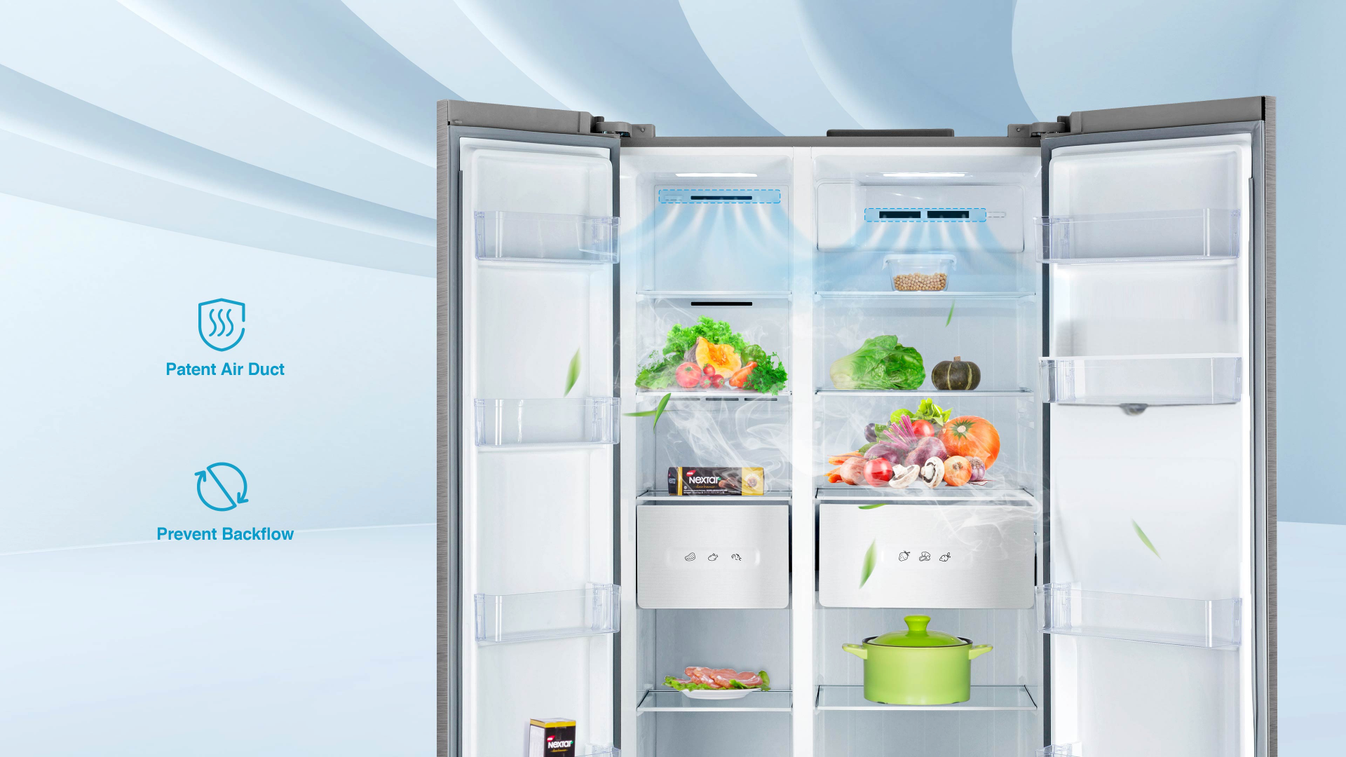 Dual temperature sensors deliver reliable readings and consistent temperature control. Cold air flow is distributed in a varied swing motion, meaning no blockages and superior aeration.