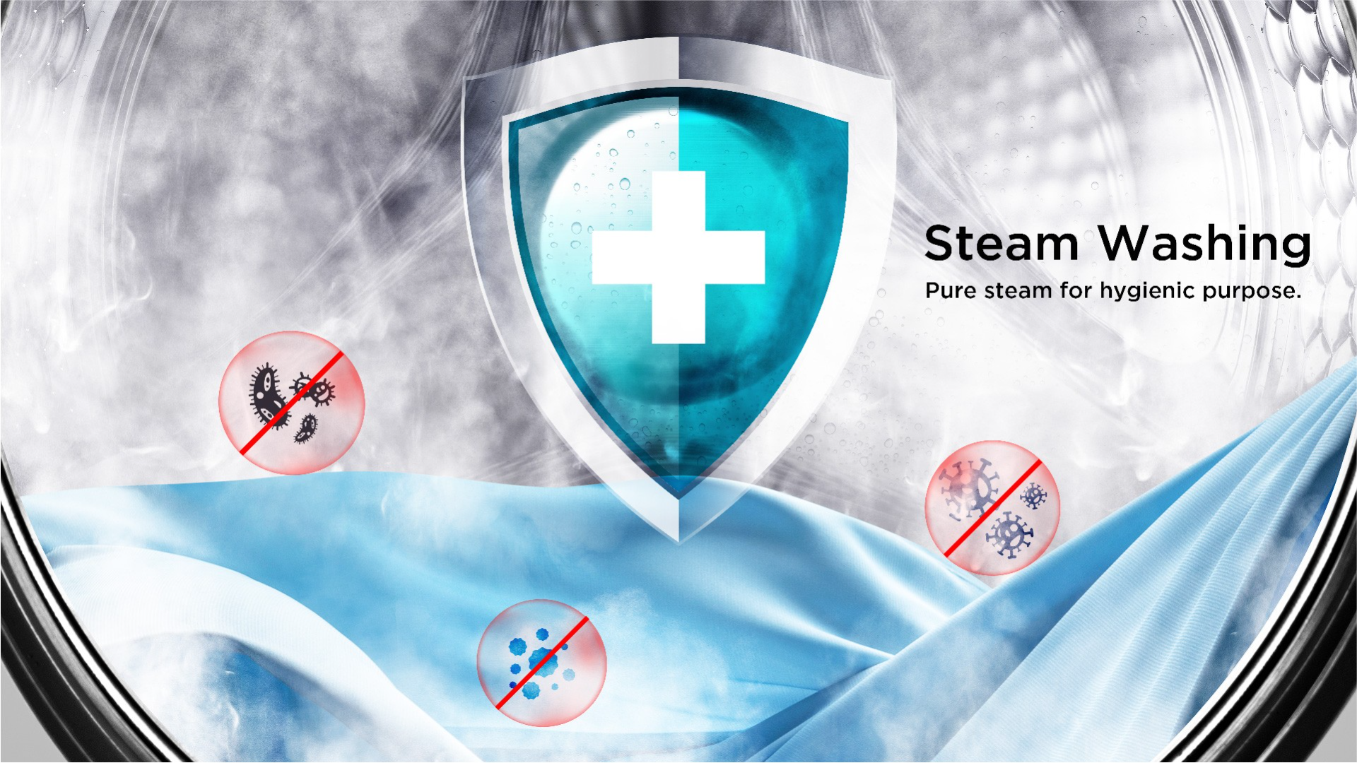 Afin de garantir que tout le linge baigne dans un environnement de vapeur, de la vapeur pure est produite au fond du tambour. Il devient alors possible de tuer les bactéries responsables des allergies, telles que les acariens, le pollen, les poils d'animaux, etc. Nettoyez vos vêtements en profondeur et de manière hygiénique.