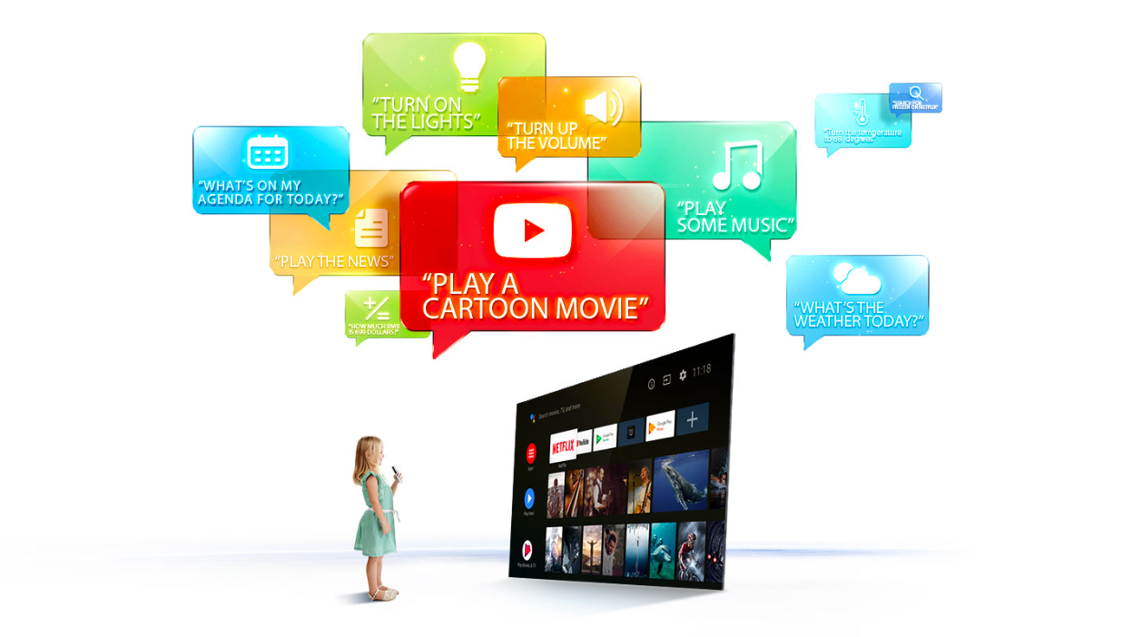 Android TV brings a world of content to your biggest screen. With the Google Assistant built in, you can quickly access entertainment, get answers, and control devices around your home. Find the latest blockbuster, check the score of the big game, or dim the lights.