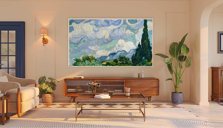 Transforma tu sala de estar con una pantalla que también es una obra de arte impresionante. El soporte de pared ultra delgado incluido y el marco intercambiable de madera clara incluido, garantizan que la pantalla A300W combine a la perfección con cualquier decoración del hogar. Experimenta una calidad de imagen sorprendente con la tecnología QLED PRO Quantum Dot, retroiluminación LED de alto brillo, procesador TCL AIPQ PRO, Dolby Vision y HDR10+.