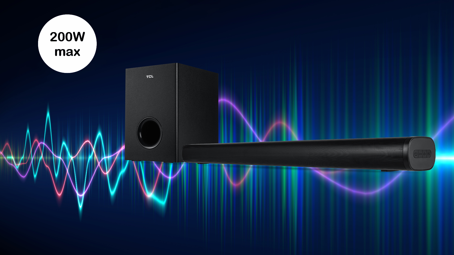Audio con un golpe de 200W de potencia con un impresionante subwoofer inalámbrico.