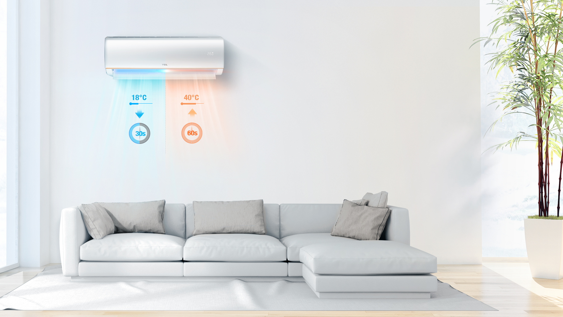 TCL Ultra-Inverter Compressor designed to start with high frequency, runs at maximum RPM and affirms the temperature reduction to 18°C in 30 Seconds