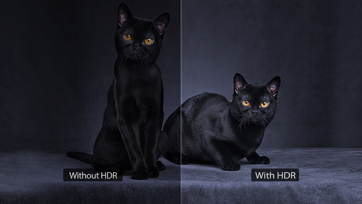 HDR delivers greater picture contrast, enhances image details and brings vivid colors to life. It is an upgrade to the current TV programming signal-standard. By using a unique algorithm, the TV panel backlight is adjusted automatically and dimmed to boost the peak brightness of on-screen objects, consequently delivering a much wider brightness range.