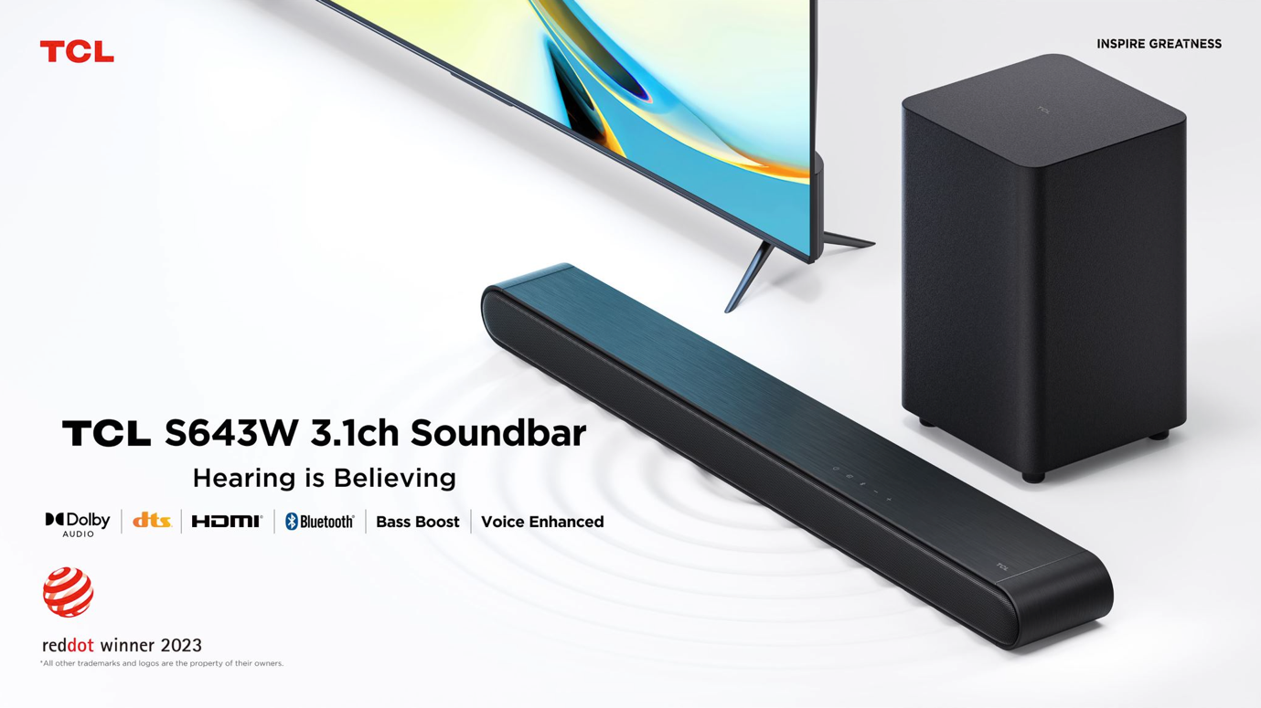 TCL, a global top 2 TV brand and top 1 98-inch TV brand, is proud to announce its new TCL S6 Series Home Theatre Soundbar has won the prestigious Red Dot Award for product design in 2023, reinforcing TCL’s expertise in developing outstanding home entertainment solutions for consumers across the globe.