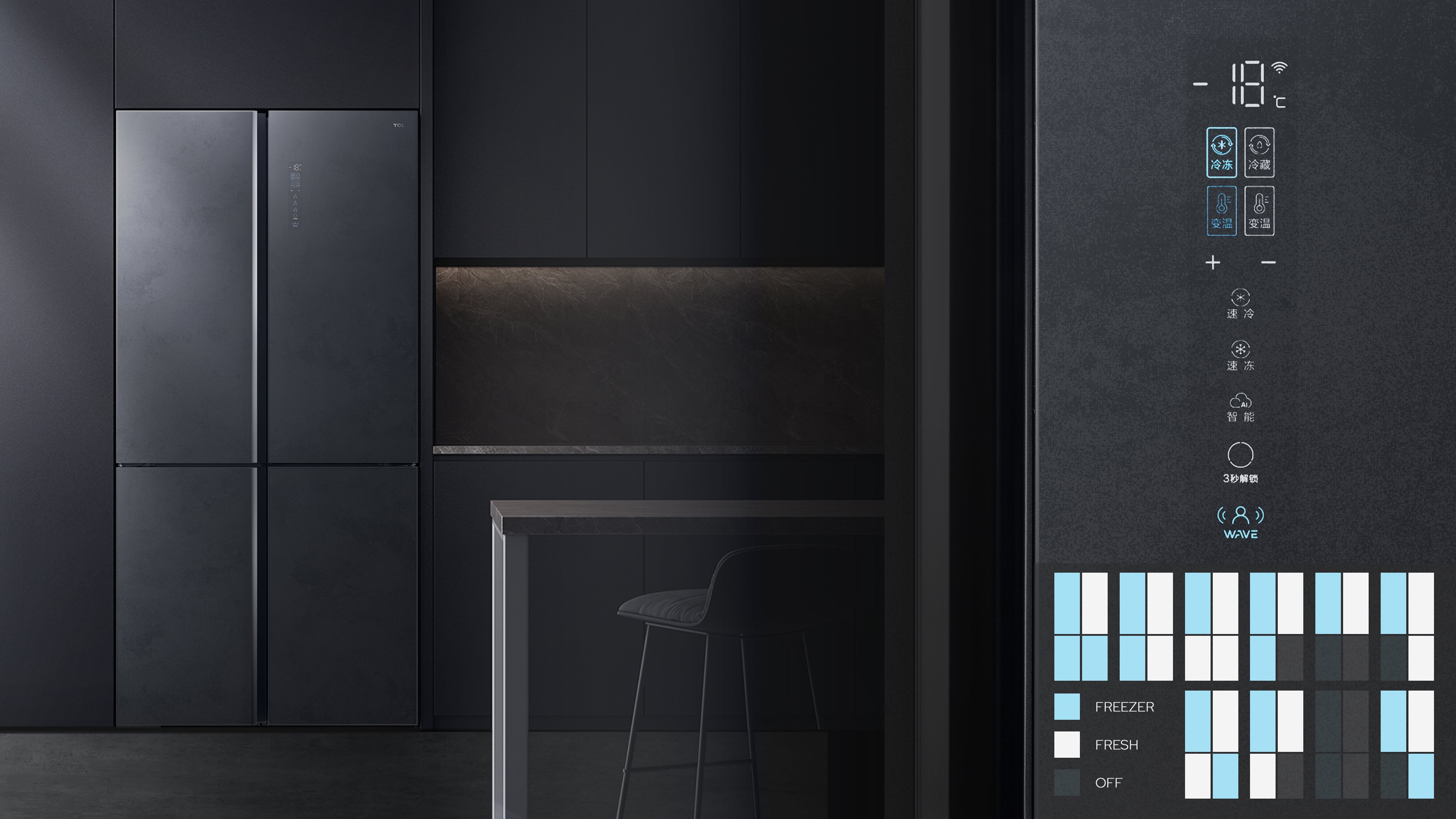 TCL Free-Transform-Zone Series Refrigerator is the first in the refrigerator industry that can change the storage space and door structure. While using 3 systems, and 4 temperature zones, each can be independently adjusted, to meet the different freshness needs of different people, different seasons, and different regions. In storage classification, health, sterilization and deodorization, energy conservation, and environmental protection, we pay attention to humanized detail design. Following TCL Inspire Nature Aesthetic design, it adopts a symmetrical design and provides a variety of door body combinations for users to choose from.