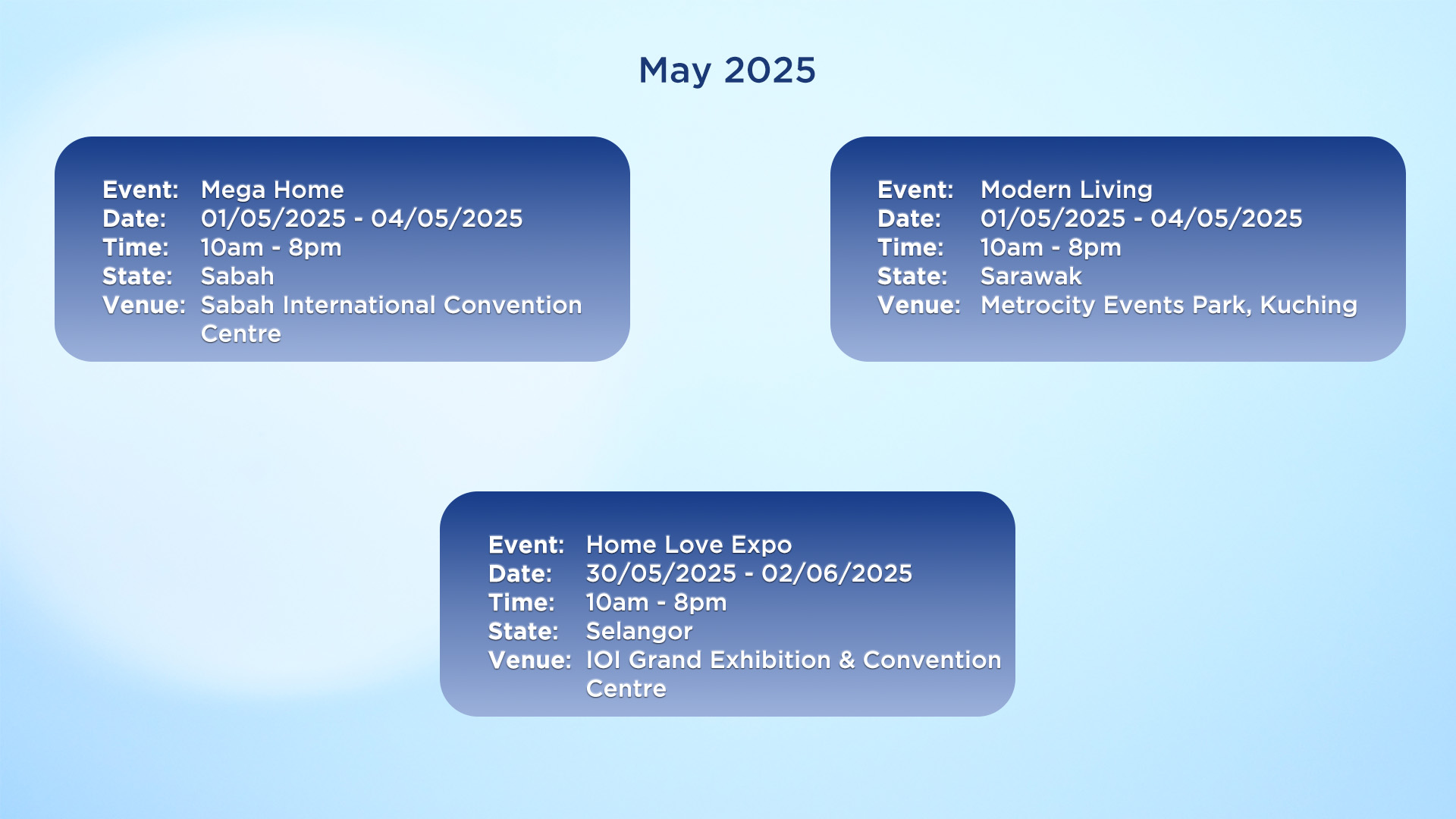 • Upcoming Events, Roadshows, Exhibitions, Fairs
