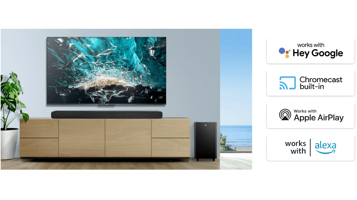 Opplev Dolby Atmos med en ny dimensjon drevet av ikke mindre enn 8 høyttalere som gir et kraftig lydbilde.