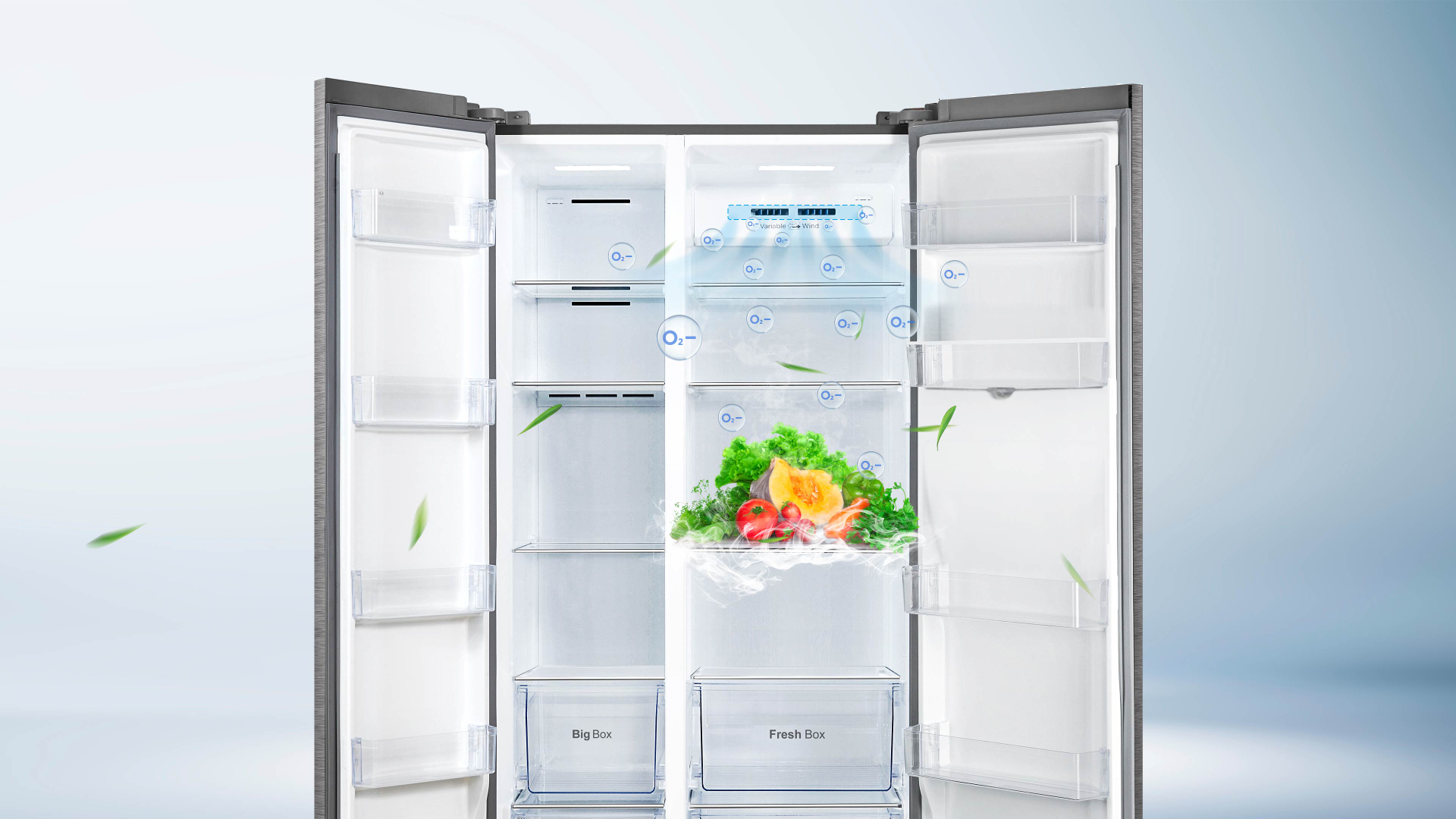 Utilisation d'un minerai de tourmaline naturel en tant que matière première, broyé en poudre dans la paroi du réfrigérateur pour libérer spontanément et en permanence un grand nombre d'ions négatifs d'oxygène pour former une chambre froide naturelle dans le réfrigérateur.