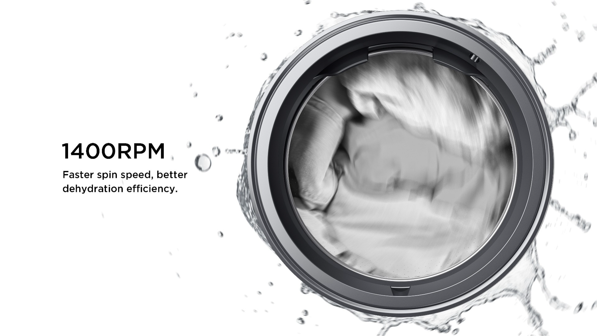 La vitesse d'essorage maximale plus rapide signifie un meilleur rendement de déshydratation, ce qui permet d'enlever plus d'eau du linge pour réduire considérablement le temps de séchage.