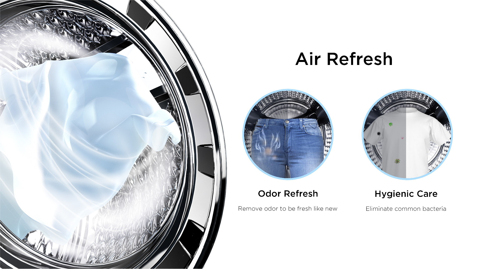 Plus besoin d'ajouter du détergent et de l'eau. Il suffit d'utiliser de l'air chaud pour rafraîchir vos vêtements en peu de temps. Le lavage à l'air peut enlever les odeurs désagréables, les allergènes microscopiques, les bactéries et les microbes dangereux.