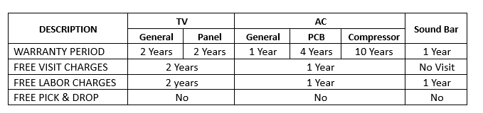 5. Warranty for the unexpired period shall continue after the product is inspected by the concerned service center and the product is found free from transit damage.