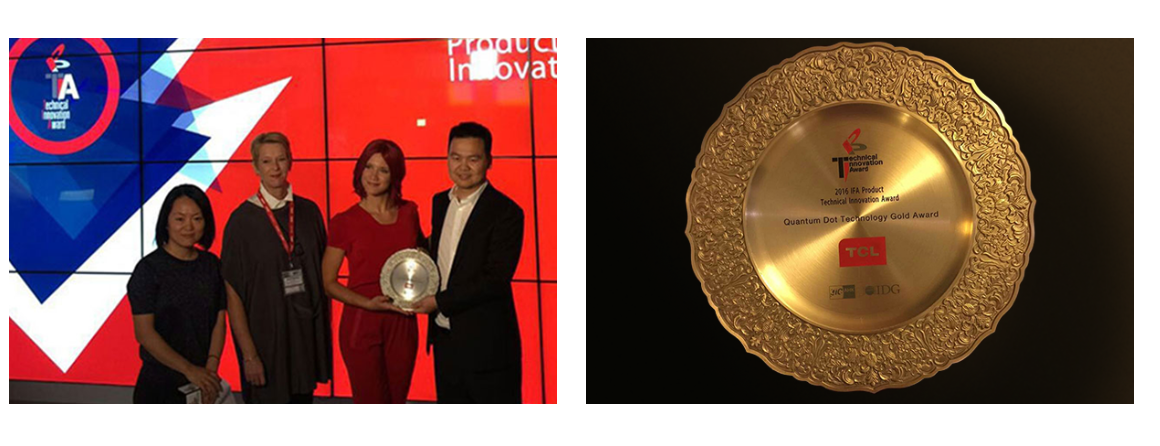 TCL został uhonorowany przez International Data Group (IDG) oraz German Industry & Commerce Ltd. nagrodą „2016 IFA Product Technical Innovation Award”, zdobywając Gold Award Technologii Quantum Dot