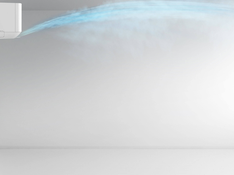 Enfriamiento estilo ducha. El flujo de aire dirigido hacia arriba cae desde el techo para crear un enfriamiento inmersivo. A través de una solapa 37% más grande, el aire fluye ampliamente, abarcando más espacio.