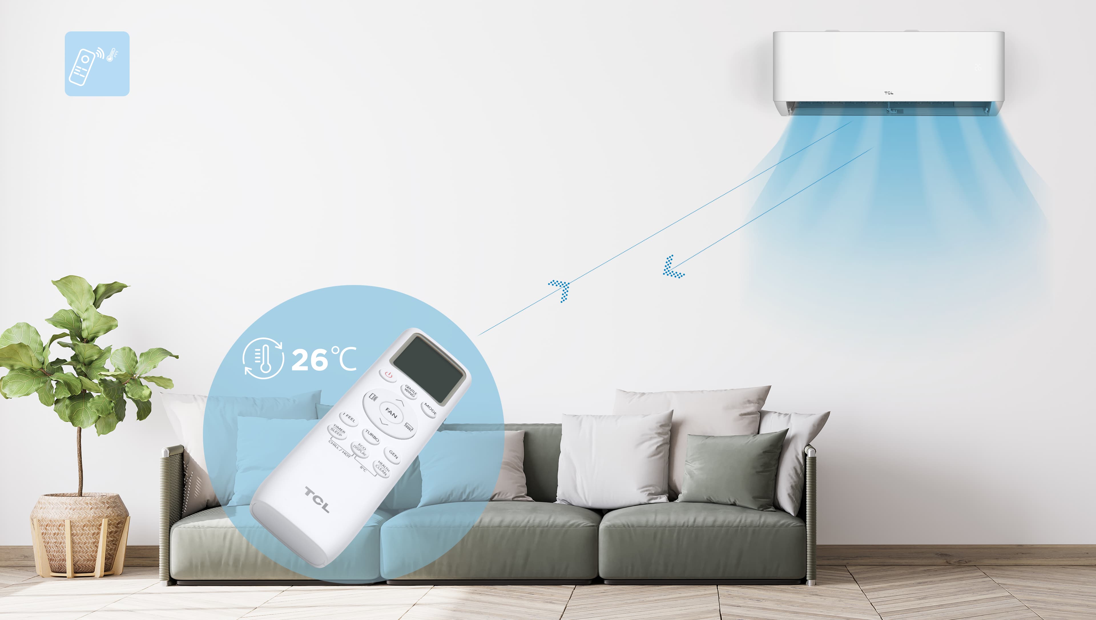 I FEEL este un senzor de temperatură integrat în telecomanda TCL. Când este activat, modul va menține temperatura selectată acolo unde se află telecomanda. I FEEL permite controlul mai precis al temperaturii oriunde vă aflați în spațiul dvs., cu telecomanda TCL aproape de dumneavoastră.
