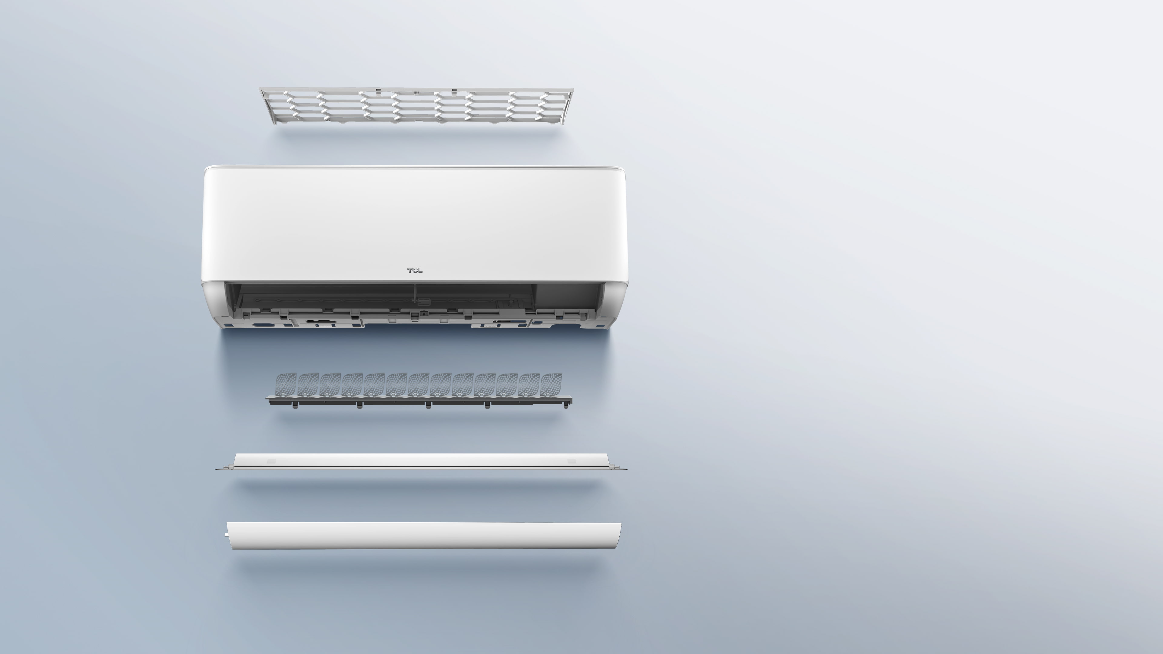 Aparatul de aer condiționat TCL a fost proiectat cu un concept intuitiv de curățare. Cele 4 componente cheie: filtrul, paletele, placa și obturatorul pot fi ușor dezasamblate pentru curățare manuală și apoi reasamblate cu ușurință.
