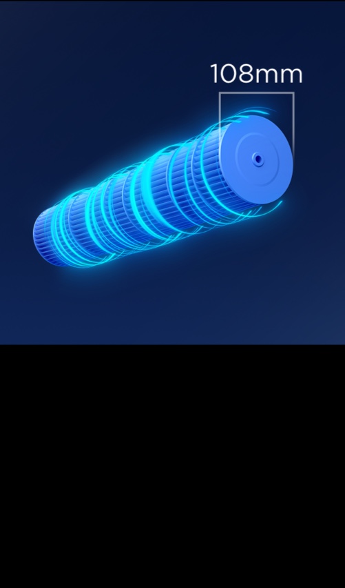 Poboljšajte cirkulaciju vazduha sa 108mm ventilatorom velikog prečnika i poprečnim protokom, koji obezbeđuje stabilan protok hladnog vazduha i efikasniji rad sa manjom potrošnjom energije.