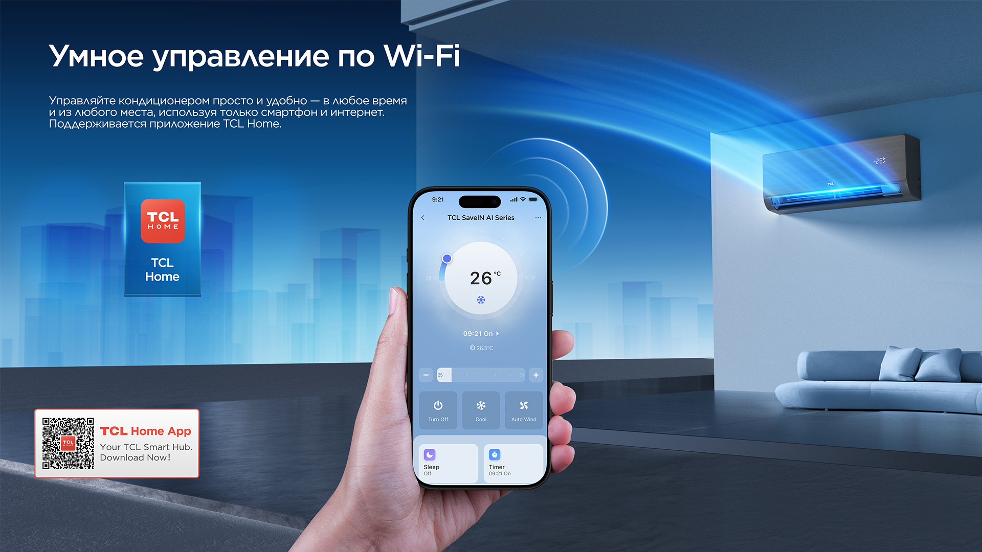 С помощью приложения TCL HOME вы можете в режиме реального времени отслеживать потребление электроэнергии вашим кондиционером. Это позволит вам контролировать и оптимизировать его использование, что, в свою очередь, повысит его энергоэффективность.